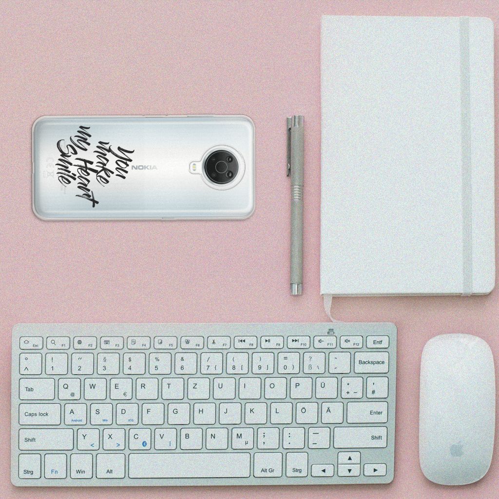Ben je op zoek naar een uniek telefoonhoesje voor je Nokia G20 | G10? Dan ben je bij B2C Telecom aan het juiste adres! Speciaal voor jou hebben we dit prachtige Heart Smile design in onze collectie hoesjes opgenomen. Het design wordt bedrukt op een Siliconen hoesje met naam en is gemaakt van flexibel rubber. Het design wordt alleen aan de bovenkant van het hoesje bedrukt en de randen blijven transparant. Aan de zijkanten zijn uitsparingen gemaakt waardoor je met gemak alle knoppen en poorten kunt bedienen. Wij adviseren om dit hoesje in combinatie met een screenprotector te gebruiken voor een langere levensduur van je telefoon. Wil je dit design hoesje nog iets extra's geven? Voeg dan gratis je naam of een quote toe! Is dit design hoesje toch niet helemaal wat je zocht? Ontwerp dan zelf een hoesje in ons ontwerpprogramma.