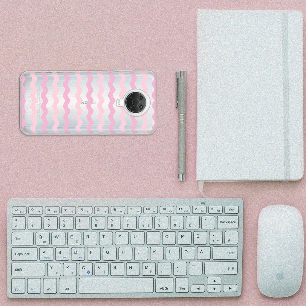 Dit design hoesje met Waves Roze afdruk is speciaal op maat gemaakt voor jouw telefoon. We hebben verschillende kleurstellingen gebruikt in het design, zodat de case er spannend en leuk uitziet. Dit licht roze hoesje met verschillende soorten golven ziet er opwindend uit. Het Nokia G20 | G10 TPU bumper wordt in ons eigen magazijn bedrukt, vandaar dat we de kosten zeer laag kunnen houden. Wij kunnen het duurzame hoesje met licht roze golven zeer snel leveren. Heb jij altijd al een design hoesje met verschillende soorten licht roze willen hebben? Deze TPU case met licht roze golven wordt alleen aan de bovenkant bedrukt en is zeer flexibel. De randen van het hoesje met licht roze golven blijven transparant en worden niet bedrukt. Met dit licht roze hoesje past jouw telefoon altijd in je broekzak.