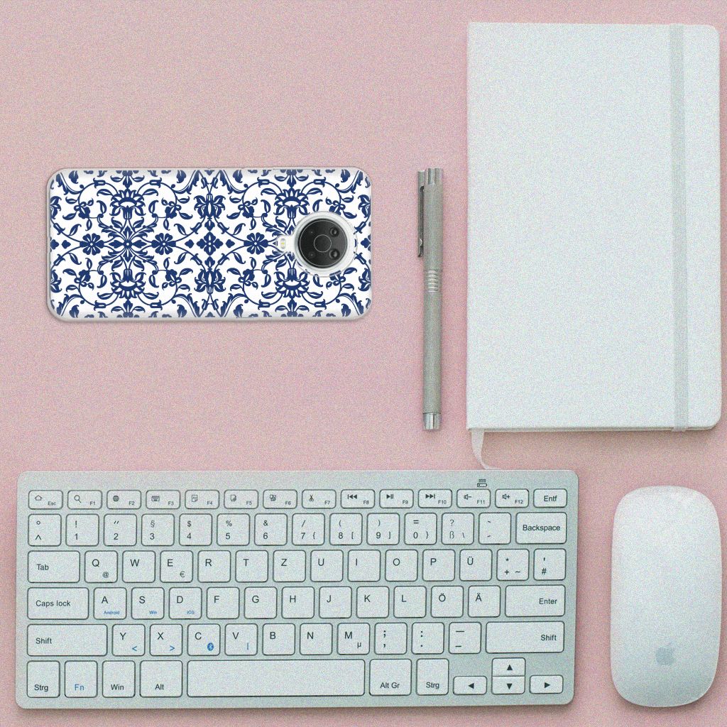 Een plaatje, deze Nokia G20 | G10 TPU Case met Flower Blue patroon, die jouw telefoon van een hele mooie uitstraling voorziet. We hebben verschillende soorten patronen in de aanbieding waarmee we jouw hoesje kunnen verrijken, maar dit is wel een van de fraaiste. Maar natuurlijk heeft iedereen zo zijn eigen smaak. Vandaar dat we nog allerlei andere patronen kunnen aanbieden in de leukste kleurencombinaties. Het tpu hoesje met blauwwit patroon beschermt jouw telefoon vooral aan de achterkant en zijkanten en heeft opstaande randen aan de voorkant. De tpu case is zeer flexibel dankzij het elastische materiaal. Wij bedrukken de case in eigen beheer. De zijkanten van de tpu case blijven transparant en krijgen dus geen blauwwit patroon. Alleen de achterzijde van de hoes wordt bedrukt. Heb je een rijke fantasie? Ontwerp dan je eigen design hoesje met favoriet patroon.