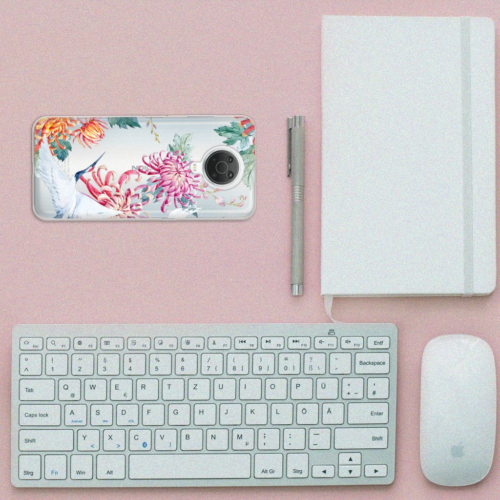 Verspreid over de hele wereld leven 19 soorten ooievaars. De spanwijdte – dat is de afstand van vleugeltip tot vleugeltip – van een volwassen ooievaar kan 2.50 meter bedragen. De gebieden waarin de ooievaar broedt, liggen in heel Europa, het Midden-Oosten, West- en Centraal-Azië en Noordwest-Afrika. Het ideale leefgebied van de ooievaar is een half open tot open landschap met veel afwisseling in grondgebruik en begroeiing. De begroeiing op dit design hoesje, in allerlei verschillende kleuren, zal niet alleen voor de ooievaars fraai zijn. Jij zult er zelf ook heel vrolijk van worden. Het in het oog springende design staat op een TPU Hoesje. Dit telefoonhoesje wordt alleen aan de bovenkant bedrukt en is zeer flexibel. De randen van het hoesje blijven transparant en worden niet bedrukt. Met dit hoesje past jouw Nokia G20 | G10 altijd in je broekzak.