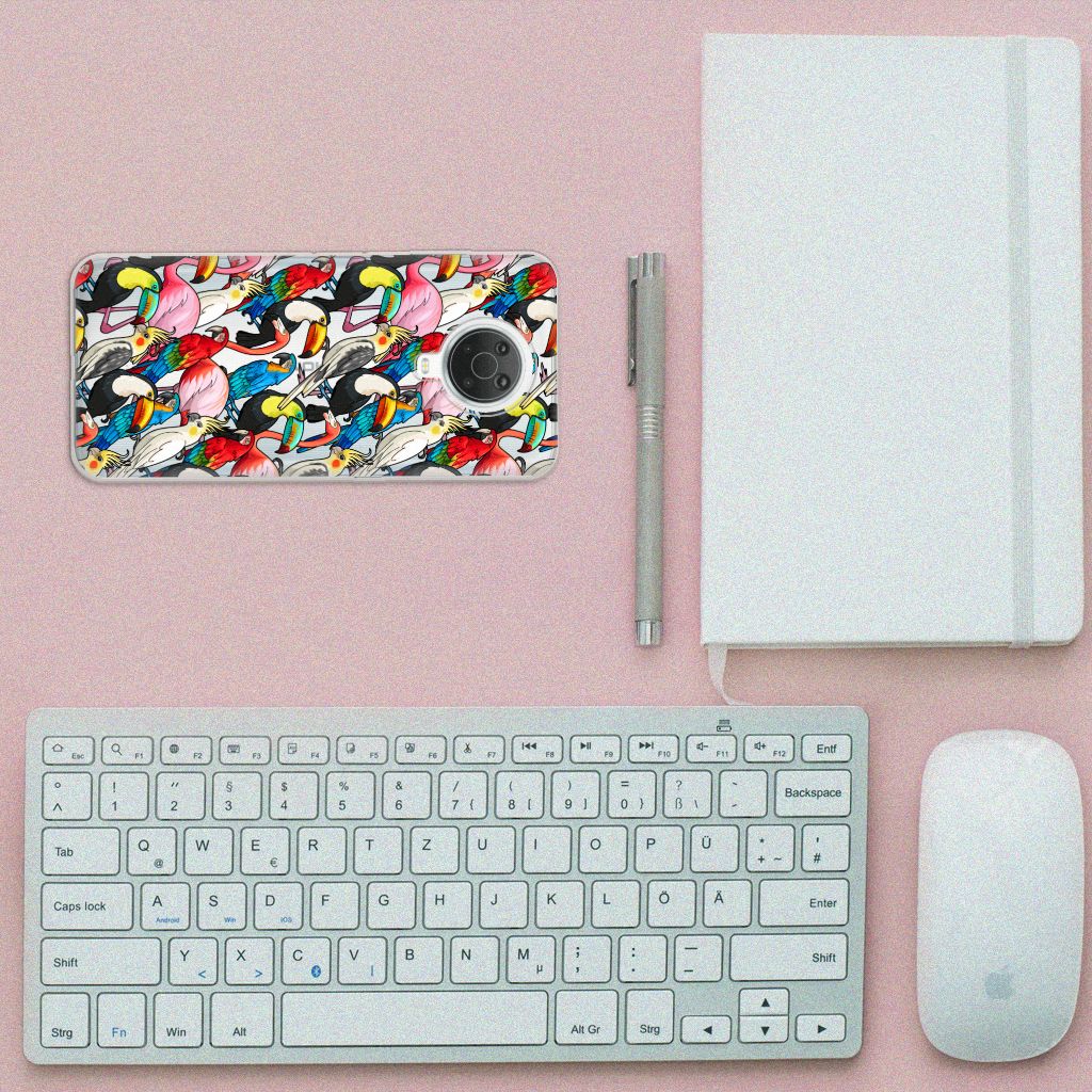 Dit exotische hoesje vol prachtige vogels is een genot voor het oog. Dankzij de felgekleurde toekans, papegaaien, flamingo’s en kaketoes op dit design word je meteen vrolijk als je naar dit hoesje kijkt. Je waant je meteen in de tropen met dit bonte gezelschap tegen een witte achtergrond. Het ontwerp staat op een TPU Hoesje voor de Nokia G20 | G10. TPU is een flexibel en onbreekbaar materiaal. Zo is je telefoon aan de achterkant en de randen heel goed beschermd. De case met het birds-design is aan de bovenkant bedrukt, de randen blijven transparant. Het TPU-hoesje is perfect te combineren met een screenprotector. Zo zijn je telefoon en je beeldscherm optimaal beschermd.