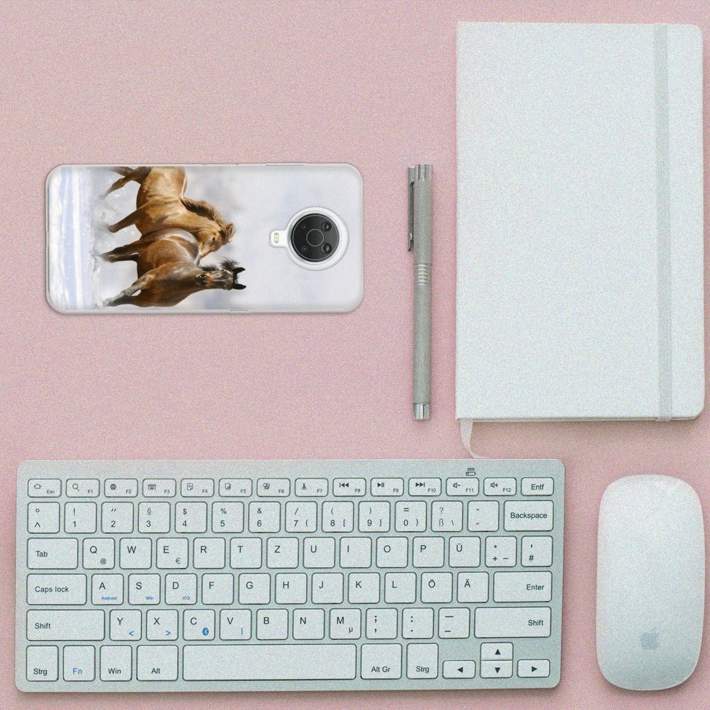 Voor de paardenliefhebbers onder ons hebben we onze collectie uitgebreid met dit design hoesje met print van paarden. Vroeger hield de mens vooral werkpaarden, inmiddels hebben we vriendschap gesloten met het paard. Vandaar dat het ook een favoriet dier is op onze smartphonehoesjes, zoals deze tpu case. Een TPU Hoesje voor de Nokia G20 | G10 met Paarden is niet alleen super mooi en chique, maar ook nog eens zeer flexibel. Verder is de case schokabsorberend en heeft het opstaande randen. Zie je liever je eigen paard terug op een hoesje. Dat kan! Door zelf een uniek hoesje te ontwerpen, met eigen foto’s en teksten. De TPU case wordt aan de bovenzijde bedrukt, de zijkanten blijven transparant.