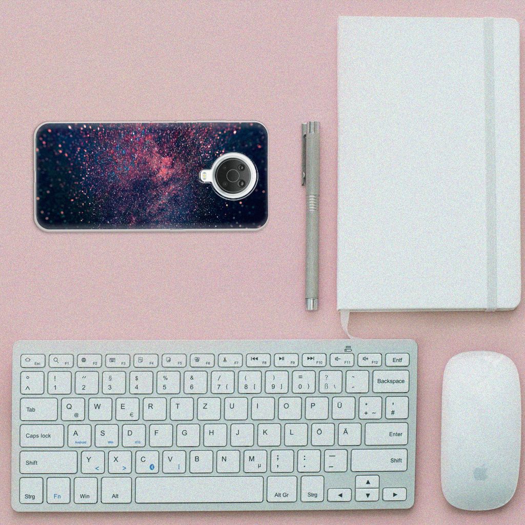 Je waant je in de zevende hemel met dit kunstzinnige, glitterachtige design hoesje met paarse en blauwe kleuren tegen een inktzwarte achtergrond. Het smartphone hoesje heeft ook een wat science fiction achtige allure. Met deze design Stars case zul je zeker opvallen. Als dit je bedoeling is, bestel dat snel dit waanzinnig mooie product voor je Nokia G20 | G10. Het telefoonhoesje is van alle gemakken voorzien en combineert een hele fraaie uitstraling met maximaal comfort. Bovendien is het gemaakt van zeer stevig en flexibel materiaal. Het unieke design, door B2C Telecom ontworpen, staat op een TPU Hoesje. Dit hoesje wordt alleen aan de bovenkant bedrukt en is zeer flexibel. De randen van het hoesje blijven transparant en worden niet bedrukt. Met dit hoesje past jouw telefoon altijd in je broekzak.
