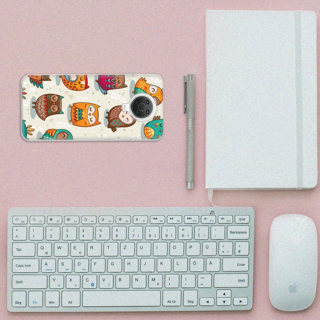 Deze Nokia G20 | G10 TPU Hoesje met Vrolijke Uilen is echt iets voor de nachtbrakers onder ons. De uil is zoals je weet bij uitstek een vogel die in de nachtelijke uren actief is. Ben jij ook iemand die s ’nachts tot leven komt, dan is deze tpu case met uilen in felle kleuren echt iets voor jou. Als je tot in de late uurtjes op stap bent, komt het goed uit dat jouw smartphone zeer goed is beschermd met deze tpu case met uilen. De case met uilen heeft opstaande randen aan de voorzijde, waardoor het touchscreen de grond niet raakt als de smartphone uit je handen valt. Verder is het onbreekbare TPU zeer flexibel en schokabsorberend. Dit komt het design ten goede. De zijkanten van de TPU case met print van uilen worden niet bedrukt, maar de bovenzijde wel. De wat ruigere types hebben veel baat bij deze tpu case met uilen in felle kleuren.