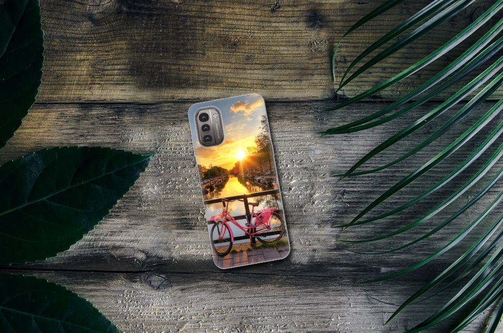 Amsterdam is meer dan ooit een toeristische trekpleister. Een bezoek aan de hoofdstad is niet compleet als je niet aanlegt bij de Amsterdamse Grachten. Ze zijn een symbool van de stad en hebben een enorme culturele en historische waarde. Daarom kunnen ze natuurlijk niet ontbreken in onze collectie design hoesjes. Dit schitterende design hoesje met Amsterdamse grachten tref je enkel en alleen aan bij B2C Telecom. De ondergaande zon en de fleurige en fraaie bloempakketten zorgen voor een prachtig totaalplaatje. Amsterdam is wereldberoemd om haar prachtige grachten uit de zeventiende eeuw. Dit smartphone hoesje is hier een eerbetoon aan. Het design staat op een TPU case. Dit Nokia G21 | G11 Siliconen Back Cover wordt alleen aan de bovenkant bedrukt en is zeer flexibel. De randen van het hoesje blijven transparant.