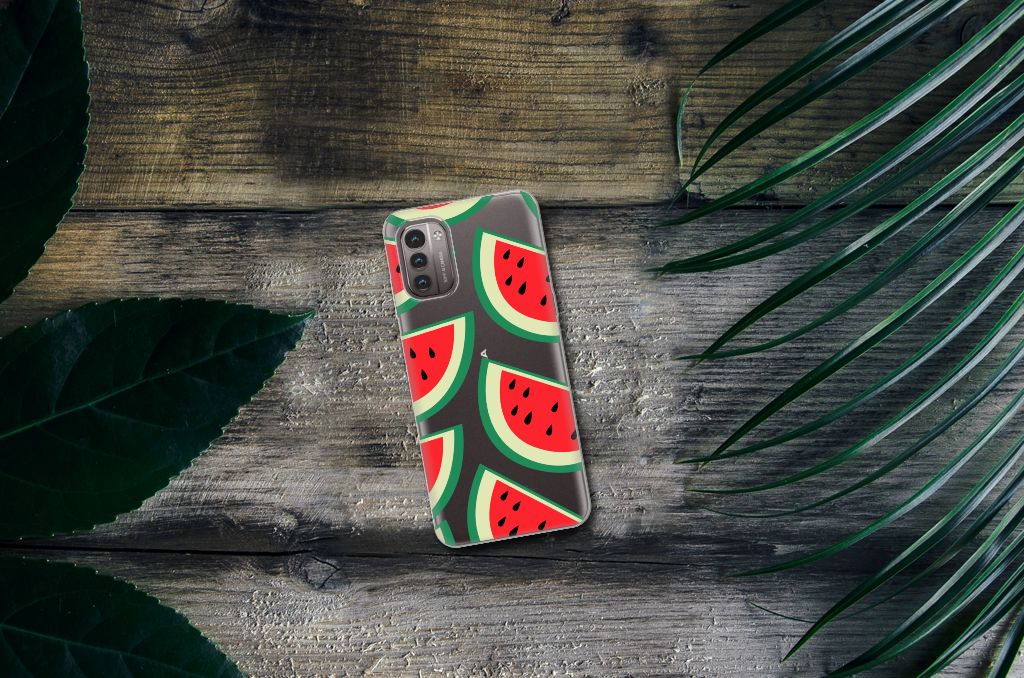 Watermeloenen zijn uitstekende dorstlessers, misschien dat je daarom juist in de zomermaanden extra enthousiast raakt van dit design hoesje Watermelons. Jij blijft gezond als je zo nu en dan een watermeloen neemt, jouw smartphone blijft in tact als je er deze Nokia G21 | G11 Siliconen Case omheen doet. Deze tpu case wordt alleen aan de bovenkant bedrukt met watermeloenen is zeer flexibel. De randen van het hoesje blijven transparant. Je kunt ook kiezen voor andere soorten fruit op je hoesje. Kijk maar eens naar onze andere design hoesjes op onze website.