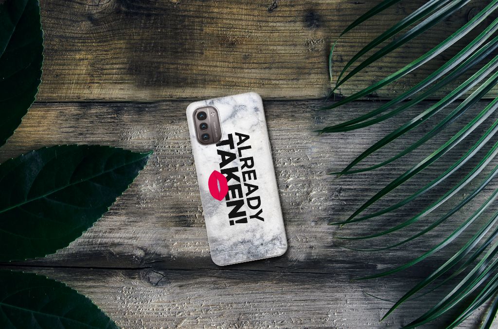 Stel dat je opdringende vrouwen of mannen van je af wil schudden op het moment dat je aan het feesten bent, omdat je al een partner hebt. Dan kun je dat met dit hoesje uitstekend duidelijk maken. Je Nokia G21 | G11 neem je waarschijnlijk vaak ter hand, dus dan zal de boodschap als je over dit hoesje beschikt zeker weten overkomen. Ook in het openbaar vervoer zal dit hoesje ervoor zorgen dat je minder snel versierd wordt door het andere geslacht. Als je vrijgezel bent en op zoek naar gezelschap, dan kun je beter kiezen voor een ander hoesje uit ons ruime en gevarieerde assortiment. Het design Already Taken White staat op een Siliconen hoesje met naam. Dit hoesje wordt alleen aan de bovenkant bedrukt en is zeer flexibel. De randen van het hoesje blijven transparant.