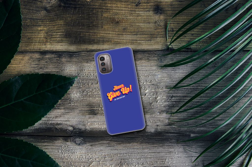 Ben je op zoek naar een uniek telefoonhoesje voor je Nokia G21 | G11? Dan ben je bij B2C Telecom aan het juiste adres! Speciaal voor jou hebben we dit prachtige Never Give Up design in onze collectie hoesjes opgenomen. Het design wordt bedrukt op een Siliconen hoesje met naam en is gemaakt van flexibel rubber. Het design wordt alleen aan de bovenkant van het hoesje bedrukt en de randen blijven transparant. Aan de zijkanten zijn uitsparingen gemaakt waardoor je met gemak alle knoppen en poorten kunt bedienen. Wij adviseren om dit hoesje in combinatie met een screenprotector te gebruiken voor een langere levensduur van je telefoon. Wil je dit design hoesje nog iets extra's geven? Voeg dan gratis je naam of een quote toe! Is dit design hoesje toch niet helemaal wat je zocht? Ontwerp dan zelf een hoesje in ons ontwerpprogramma.