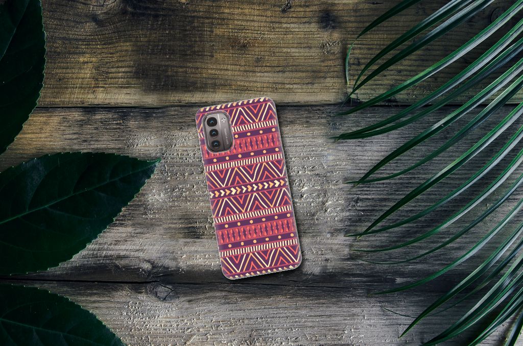 De Azteken leefden tussen 1200 en 1521 in het huidige Mexico. De mooie Aztec-patronen waar zij bekend om stonden, zien we nu nog op kleding, stoffen en tassen. Wie had toen kunnen bedenken dat we diezelfde prints honderden jaren later zelfs op een telefoonhoesje zouden vinden? Dit kleurrijke Aztec Purple-hoesje is perfect voor iedereen die een stukje geschiedenis bij zich wil dragen maar ook gewoon een mooi patroon op zijn hoesje wil. Dit vrolijke, kleurrijke ontwerp staat op een TPU bumper voor de Nokia G21 | G11. TPU is flexibel en onbreekbaar. Zo is je telefoon aan de achterkant en de randen heel goed beschermd. De case is aan de bovenkant bedrukt, de randen blijven transparant.