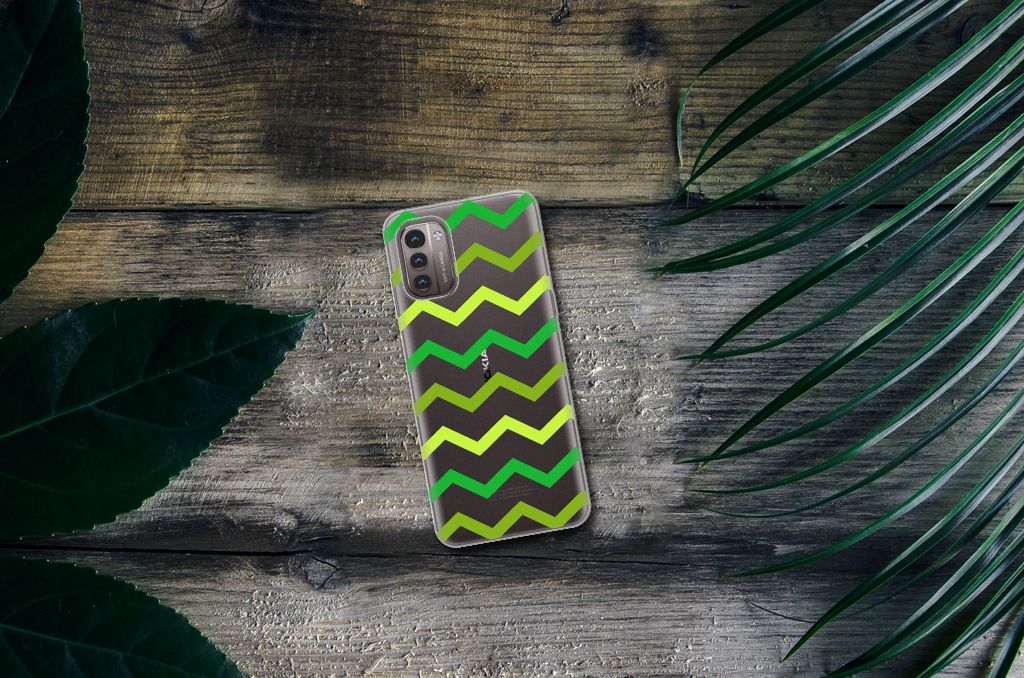 Dit zigzag groene design hoesje is speciaal ontworpen voor jou. We hebben bewust verschillende stijlen groen gebruikt, zodat er voldoende sprake is van variatie. Dit groene hoesje ziet er super strak uit. Dat kan ook niet anders als je weet dat onze designer zijn creativiteit heeft gebruikt. Hij schudt voortdurend nieuwe designs uit zijn mouw en dit zigzag groene hoesje is een van zijn fraaiste creaties. Een heel tof Nokia G21 | G11 TPU bumper, al zeggen we het zelf. Valt dit Zigzag Groen design hoesje goed bij jou? Bestel het dan vandaag nog en je hebt het morgen in huis. Het design staat op een TPU case. Dit hoesje wordt alleen aan de bovenkant bedrukt en is zeer flexibel. De randen van het hoesje blijven transparant en worden niet bedrukt. Met dit hoesje past jouw telefoon altijd in je broekzak.