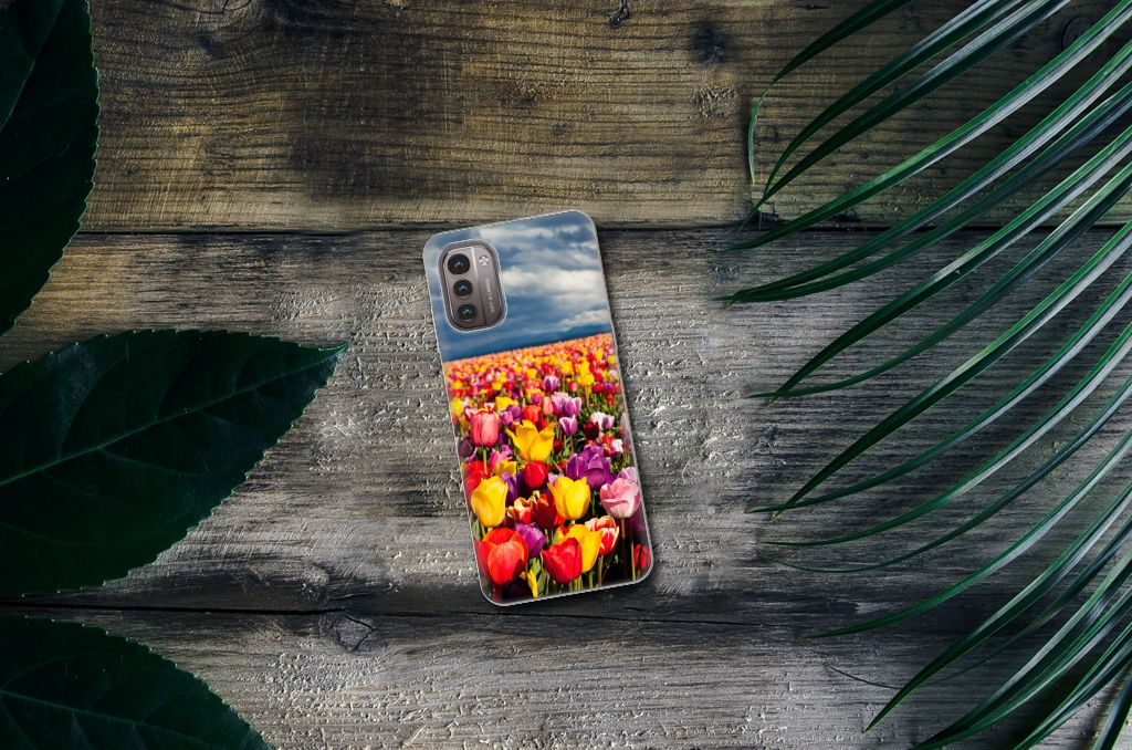 De tulp is een oer-Nederlandse bloem en heeft een lange geschiedenis. Deze Nokia G21 | G11 TPU Case met Tulpen ziet er bijzonder kleurrijk uit. Dit fleurige smartphone hoesje geeft een bijzondere bescherming van jouw apparaat. Tulpen zijn ideaal voor een kleurrijk begin van het tuinseizoen. Iedereen wordt er vrolijk van om te zien hoe deze bloemen het voorjaar kleur geven en het begin van de warmere tijd van het jaar aankondigen. Dan kan het toch niet anders of jij wordt heel erg blij van deze tpu case met tulpen? Deze tpu case is zeer flexibel en past altijd in je broekzak. Het materiaal is zeer elastisch en onbreekbaar. De case wordt niet aan alle zijden bedrukt met tulpen. De randen blijven transparant. Je kunt ook zelf een tpu case maken met daarop jouw favoriete bloem.