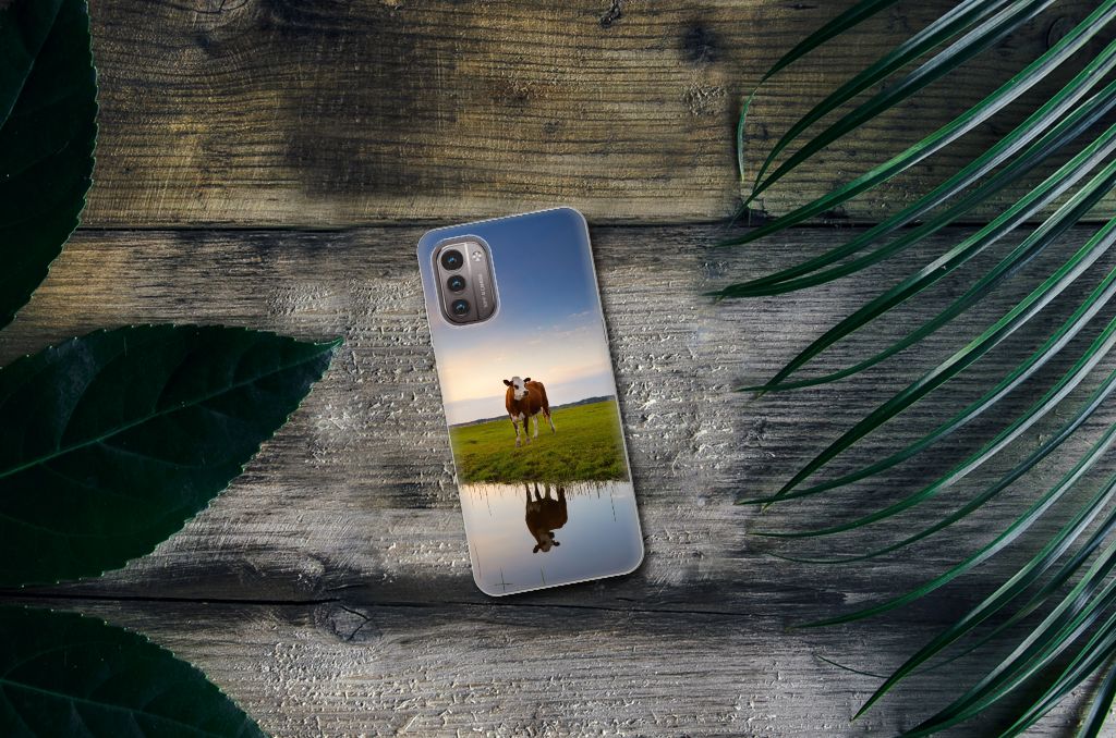 Het levert een idyllisch plaatje op, dit hoesje met een koe en ondergaande zon op de achtergrond. Door een koe buiten te laten lopen en grazen, hebben ze minder kans om ziek te worden. De Koe graast het liefst met soortgenoten, al zijn deze een stukje van de koe op de case verwijderd. Dit levert ook een mooi plaatje op, zoals je kunt zien op dit design hoesje. Dit tpu hoesje met koeien ziet er flexibel uit en is voorzien van alle uitsparingen. Een Nokia G21 | G11 TPU Hoesje met koeien beschermt jouw smartphone vooral aan de achterkant en zijkanten. De zijkanten blijven transparant, de rest van het hoesje is bedrukt. Koeien herkauwen het liefst liggend, behalve wanneer het regent. Zo goed als grazen voelt voor koeien, zo duurzaam zal jouw smartphone blijven met dit design hoesje. Het TPU is schokabsorberend en niet te breken. De TPU case past altijd in je broekzak.