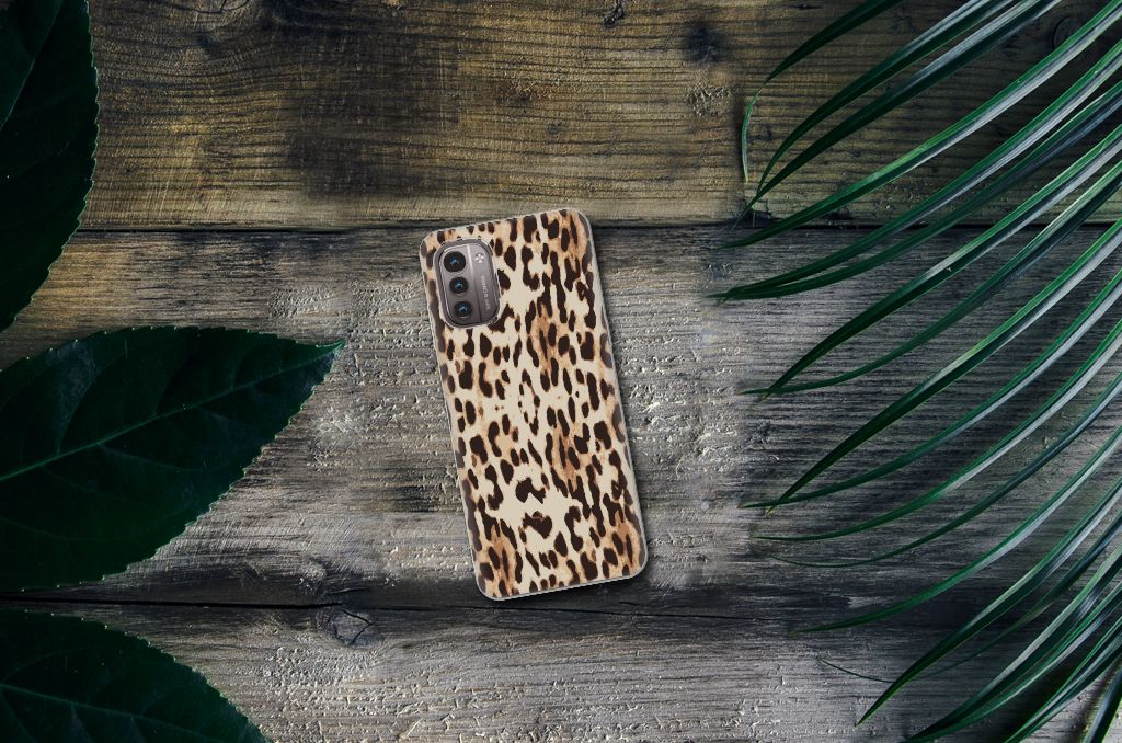 Het luipaard wordt ook wel een panter genoemd. De bruingele vacht met een patroon van rozetachtige vlekken geeft een hele goede schutkleur. Dit zie je ook op een fraaie manier afgebeeld op dit super stoere hoesje met luipaardprint. Mensen die indruk willen maken kopen deze tpu case met Leopard print. Een Nokia G21 | G11 TPU Hoesje is erg flexibel en stevig. Het is praktisch – door het elastische materiaal neem je de telefoon makkelijk met je mee – en beschermt jouw smartphone aan de achterzijde en zijkanten zeer goed. Het luipaard is sterk en behendig en wellicht typeert jou dat ook wel. Dan past dit hoesje met luipaard perfect bij jou. De houder van TPU is minstens zo sterk als het luipaard. Jouw telefoon is zeer goed beschermd. De case heeft alle uitsparingen die nodig zijn. De randen blijven transparant. Enkele de bovenzijde wordt bedrukt met luipaardprint.
