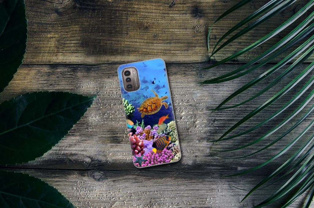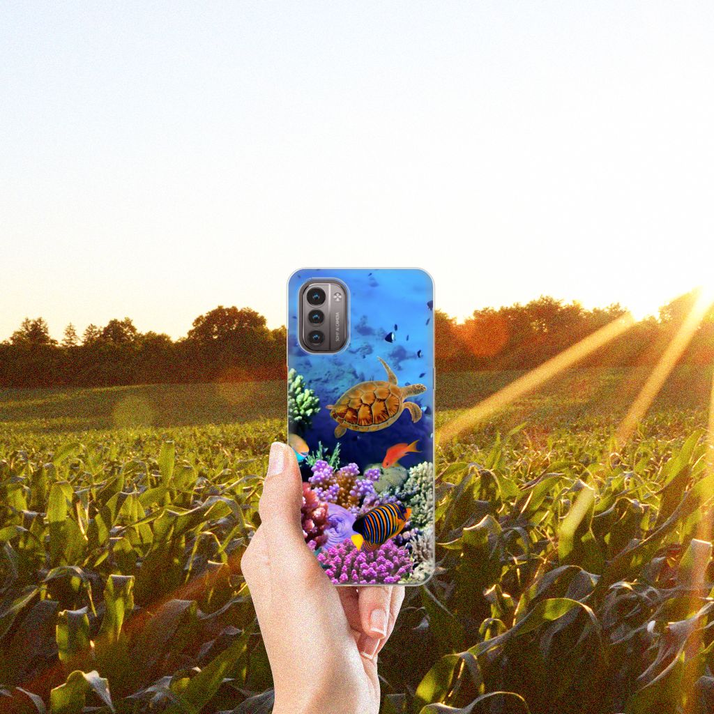 Dit kleurrijke hoesje met tropische Vissen is een ware eyecatcher. Als je aan het duiken bent en je treft een school aan met dit soort opvallende vissen, dan heb je een geweldige ervaring. Maar je hoeft er eigenlijk niet per se het water voor in te duiken. Want wij hebben een schitterende verzameling vissen op dit design hoesje gezet. Met onze zeer geavanceerde printer zetten we de afbeelding van vissen op de bovenkant van de Nokia G21 | G11 TPU Hoesje, de randen blijven transparant. De case is gemaakt van zeer elastisch en onbreekbaar materiaal. Verder is je telefoon natuurlijk goed beschermd met deze tpu case met print van vissen. Deze case heeft tevens opstaande randen, waardoor je scherm de grond niet zal raken als de smartphone uit je handen valt.