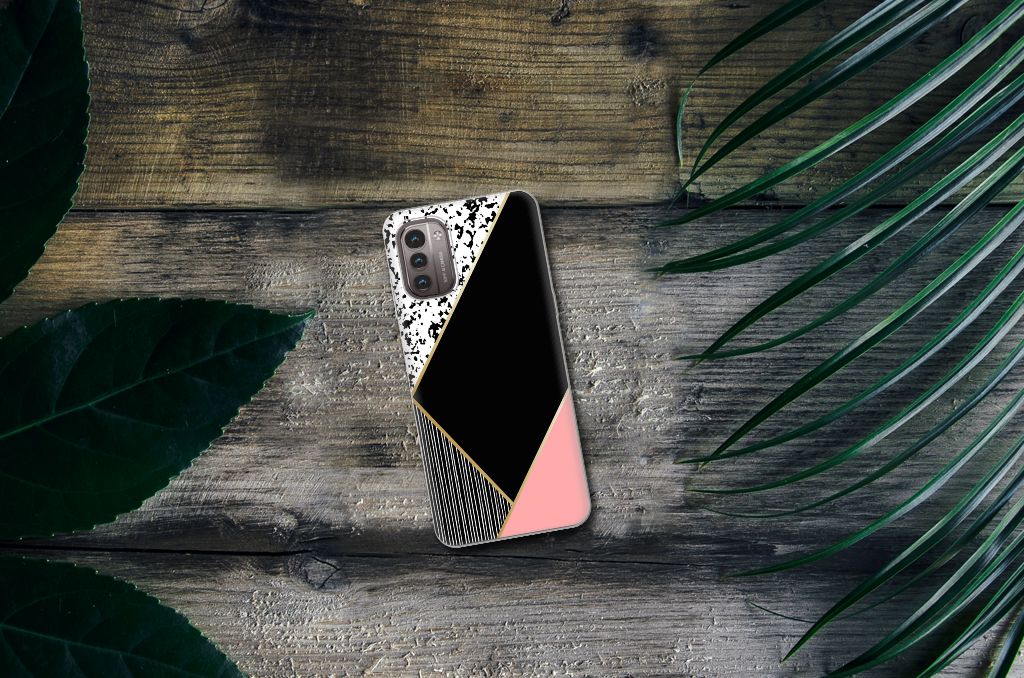 TPU Hoesje Nokia G21 | G11 Zwart Roze Vormen Design