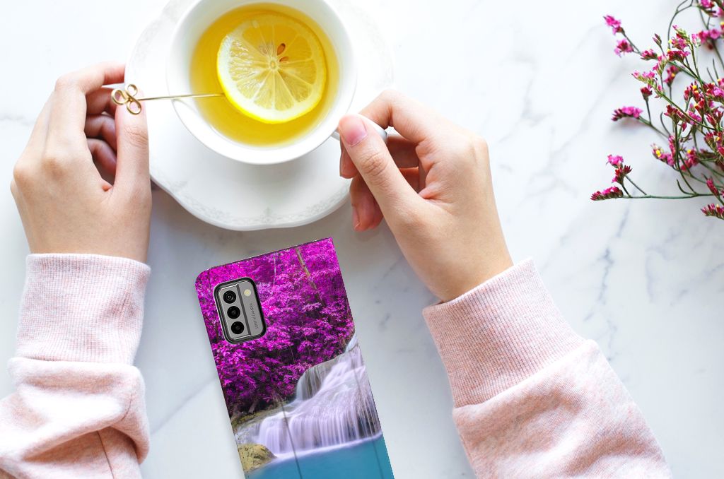 Van een waterval kun je een heel rustig gevoel krijgen, zeker als die op een Nokia G22 Book Cover staat dat jouw smartphone perfect beschermt tegen allerlei vormen van schade zoals krassen, barsten en scheuren. In de buurt van een waterval ben je tijdens warme zomerdagen niet alleen verzekerd van aangename verkoeling, het is ook een bijzonder rustgevende ervaring. Uit onderzoek blijkt zelfs dat watervallen een helend effect hebben op allerlei aandoeningen. Extra bijzonderheid aan de stand case vormen de paarse bossen op de achtergrond. Dit smartphonehoesje beschermt jouw telefoon aan alle zijden en beschikt over een opbergvakje voor pasjes en briefgeld. De case sluit perfect af dankzij de magneten van binnen. De houder aan de binnenzijde is van TPU. Alle zijden van het hoesje worden bedrukt. Een mooiere waterval met paarse achtergrond kom je op geen enkel ander hoesje tegen.