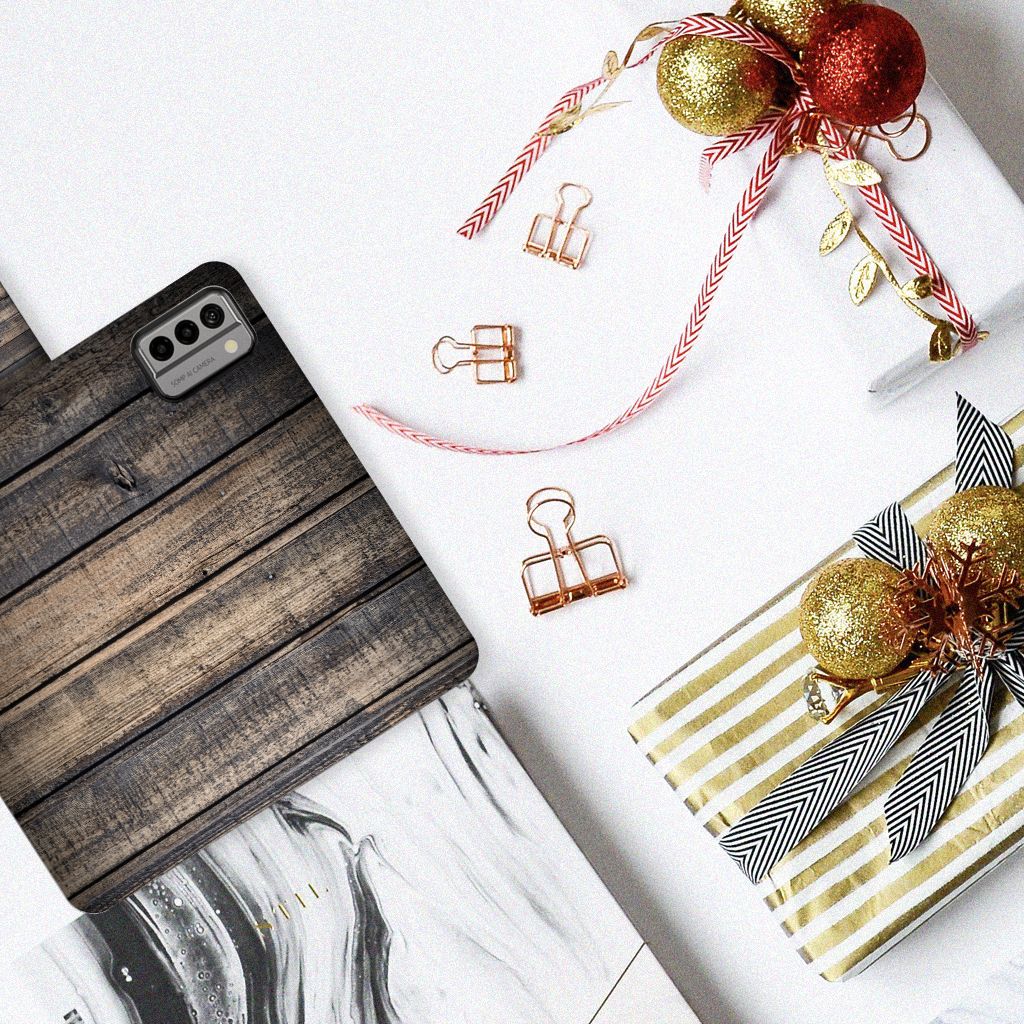 Nokia G22 Bookstyle Case met ruimte voor 3 pasjes Steigerhout