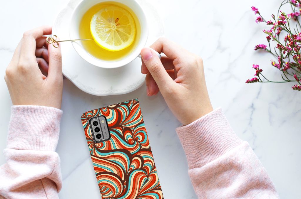 Voor de mensen die een beetje artistiek zijn, is er deze Nokia G22 Bookcase met kleuren in een soort van retro stijl. Je gaat een beetje terug in de tijd met deze stand case in allerlei felle kleuren en vreemde vormen. De opdruk op dit design hoesje is zeer duurzaam en gaat net zo lang mee als de case zelf. De Retro print wordt in ons eigen magazijn op het hoesje gezet, met speciale uv-inkt. De stand case heeft voldoende uitsparingen dus je hoeft de telefoon nooit uit dit retro design hoesje te halen. Deze case beschermt jouw telefoon aan alle kanten en beschikt over 1 opbergvakje en een speciale standaard. Het hoesje wordt afgesloten met een magneet aan de binnenzijde. De houder aan de binnenzijde van de retro hoes is van TPU.