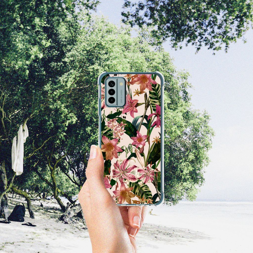 Ben je op zoek naar een uniek telefoonhoesje voor je Nokia G22? Dan ben je bij B2C Telecom aan het juiste adres! Speciaal voor jou hebben we dit prachtige Flowers design in onze collectie hoesjes opgenomen. Het design wordt bedrukt op een Case en is gemaakt van flexibel rubber. Het hoesje is perfect voor de actieve smartphonegebruiker door de opstaande randen/hoeken. Denk aan mensen die veel sporten, reizen of wandelen en net iets meer zekerheid willen als het op hun geliefde telefoon aankomt. Het design wordt alleen aan de bovenkant van het hoesje bedrukt en de randen blijven transparant. Aan de zijkanten zijn uitsparingen gemaakt waardoor je met gemak alle knoppen en poorten kunt bedienen. Wij adviseren om dit hoesje in combinatie met een screenprotector te gebruiken voor een langere levensduur van je telefoon. Wil je dit hoesje nog iets extra's geven? Voeg dan gratis je naam of een quote toe! Is dit design hoesje toch niet helemaal wat je zocht? Ontwerp dan zelf een hoesje in ons ontwerpprogramma.