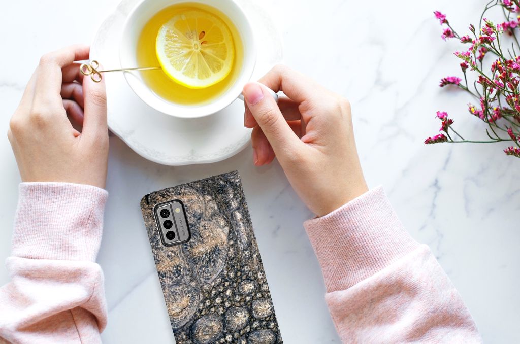 De dikke huid van een krokodil is zeer gevoelig. Met deze Nokia G22 Hoesje maken met Krokodillenprint hoef je je geen zorgen te maken dat je smartphone schade oploopt. De krokodillenprint zetten we op een stand case op het moment dat jij je bestelling plaatst. Hierdoor krijgt jouw telefoon een print van krokodillen van zeer hoge kwaliteit. We bedrukken jouw gehele stand case met de vlekken van de krokodil. Je bankpas of creditcard kun je stoppen in het vakje aan de binnenkant van het telefoonhoesje met krokodillenprint. Met hun zintuigen kunnen krokodillen hitte, kou, aanraking, waterstroming en chemische stoffen detecteren. Jouw stand hoesje met krokodillenprint beschermt perfect tegen invloeden van buitenaf.