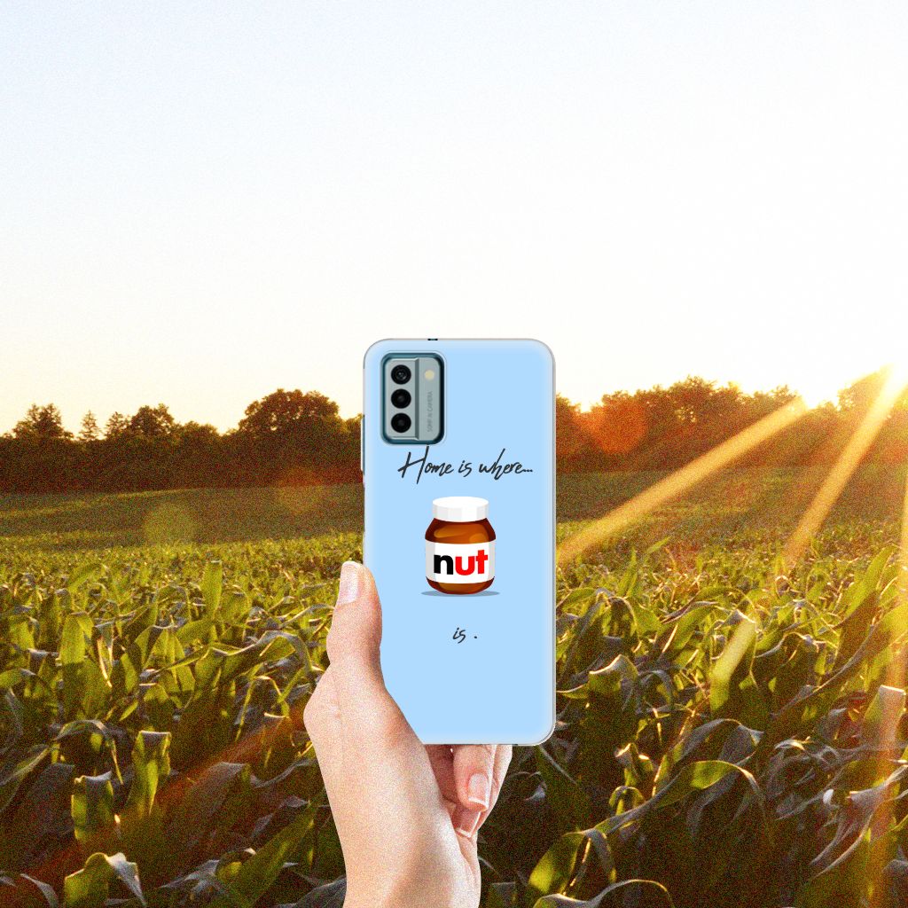 Ben je liefhebber van chocoladepasta, dan is dit het perfecte Nokia G22 Siliconen Case voor jou. De chocoladepasta is enorm populair, dus is het niet zo heel gek dat je een ‘Nut Home’ tpu case in een blauwe kleur aantreft in ons assortiment design hoesjes met illustraties. Dit tpu hoesje is zeer flexibel en past altijd in je broekzak. Alleen de bovenkant van dit hoesje wordt door ons bedrukt in blauwe kleur met de pasta, op zeer duurzame manier. Mensen die houden van de bekendste pasta van het moment, kiezen voor deze blauwe tpu case. Er staan geen illustraties op de zijkanten van een tpu case. Je kunt ook een eigen tekst toevoegen aan het opvallende design.