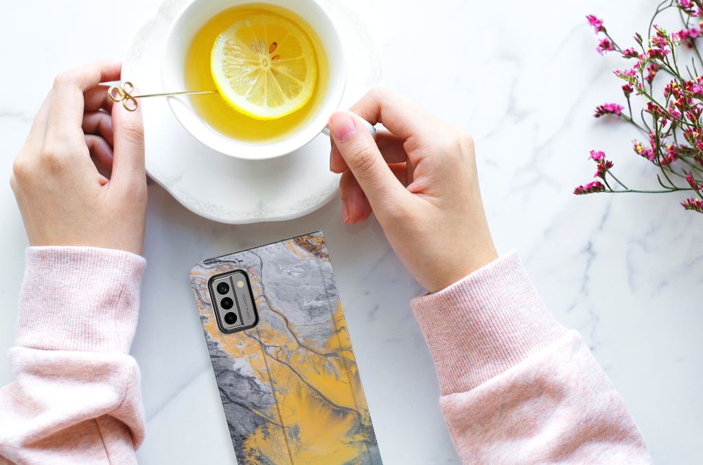 Deze Nokia G22 Standcase met Marble Blue Gold is het waard om een blokje voor om te fietsen. Dit is echter helemaal niet nodig. Als je het hoesje met marmer blauw met goud nu bestelt heb je het supersnel in huis. Je kunt er bij wijze van spreken voor de brievenbus op blijven wachten. Je hebt diverse marmersoorten in veel verschillende kleuren. We hebben enkele mooie kleuren op design hoesjes gezet, zoals in dit geval marmer blauw met goud. Het marmer wordt bedrukt op alle zijden van de stand case, die beschikt over een vakje voor pasjes of briefgeld en een magnetische sluiting aan de binnenzijde. Verder heeft de case met marmer blauw met goud een houder van TPU. De rijkheid aan kleuren en variaties in afwerking is een fraaie eigenschap van marmer. Dit stand hoesje met marmer blauw met goud heeft ook veel schitterende eigenschappen en is de ideale bescherming voor jouw smartphone.
