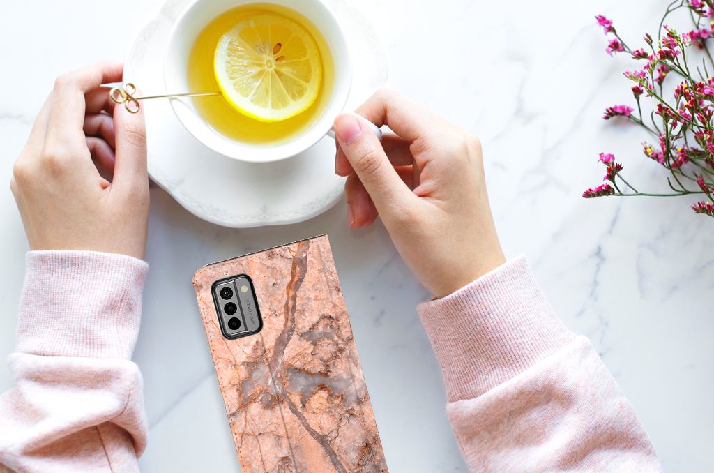 Dit design hoesje met Marmer Oranje is zeer geschikt voor jouw kostbare telefoon. Vanwege zijn prachtige lichtval en vastheid is marmer een zeer gewild bouwmateriaal. Wij kunnen inmiddels concluderen dat dit hoesje met oranje marmer ook zeer gewild is. Beloon jezelf en je telefoon met dit hele mooie Nokia G22 Standcase. Naast het oranje marmer zijn er de diverse marmersoorten in een ruim kleurenpallet te krijgen. Deze stand case met marmer in oranje wordt bedrukt op alle zijden. De case beschikt over een vakje voor een pasje en toebehoren en een magnetische sluiting aan de binnenzijde. Verder heeft de case in oranje marmer een houder van TPU. Wij hebben onze designer veel vrijheid gegeven met het ontwerpen dit mooie hoesje. Het resultaat zie je terug in deze stand case met oranje marmer, dat de ideale bescherming is voor jouw smartphone. Des te mooi dat wij voor variatie hebben gekozen door een hoesje met oranje marmer aan de bieden.