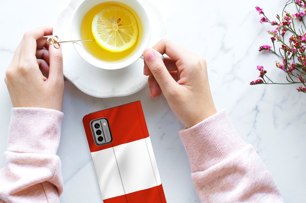 Vroeger werden vlaggen gebruikt om een boodschap over te brengen of een ridderorde aan te duiden. Tegenwoordig worden vlaggen gebruikt voor verschillende doeleinden. Een vlag kan worden gebruikt om te verwijzen naar een land, stad of beweging. Het staat symbool voor de nationaliteit van de mens. In onze collectie hebben wij alle Europese vlaggen opgenomen. De vlag wordt gedrukt op een Standcase voor de Nokia G22 en heeft een vakje voor pasjes. Het fijne aan dit hoesje is dat je het horizontaal als standaard neer kunt zetten. Door de magneten aan de binnenkant wordt het hoesje afgesloten. Ook bieden wij de mogelijkheid om gratis je naam toe te voegen om het hoesje helemaal af te maken. Wil je meer vrijheid om het hoesje helemaal naar eigen wens te maken? Ga dan verder met ontwerpen in ons unieke ontwerpprogramma.