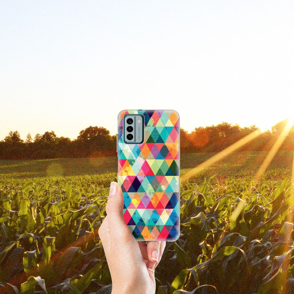 Van dit geruite design hoesje moet je een beetje houden. Maar als je het eenmaal in bezit hebt, ben je waarschijnlijk binnen no time verkocht. Het design heeft ruitjes in alle kleuren van de regenboog en door de grijze achtergrond kan het hoesje enigszins druk overkomen. Maar tegelijkertijd is dit de kracht van het hoesje. Met dit design hoesje Geruit zal je namelijk heel erg opvallen. Dit is voor veel vooral jonge smartphone gebruikers een belangrijk voordeel. Deze geruite print staat op een Nokia G22 TPU bumper. Dit zeer flexibele smartphone hoesje heeft alle nodige uitsparingen en past altijd in je broekzak. De case is aan de bovenkant bedrukt, de randen blijven transparant.