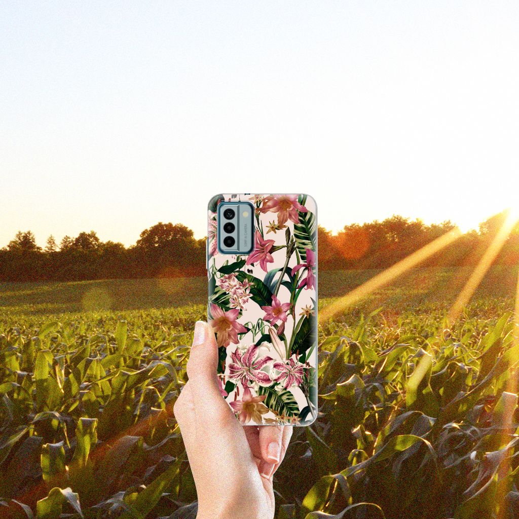 Dit Flowers design is een zegen voor de mens en zijn smartphone. De paarswitte bloemen en groene bladeren op deze Nokia G22 TPU Case geven jouw smartphone een zeer sierlijke uitstraling. Je wordt er ook meteen vrolijker van als je aan het appen, mailen of aan het bellen bent. Valt dan je telefoon op de grond, dan zal er dankzij de tpu case met paarswitte bloemen en groene bladeren geen schade ontstaan. Helemaal niet als je er een screenprotector bij hebt gekocht. Onze tpu cases met paarswitte bloemen en groene bladeren zien er zeer prettig uit en zijn heel praktisch, getuige onder meer de opstaande randen en het flexibele materiaal. Alleen de achterkant van de tpu case wordt bedrukt met paarswitte bloemen en groene bladeren, de randen blijven transparant. Op deze tpu case kun je trouwens ook in no time zelf foto’s van jouw favoriete bloemen zetten.