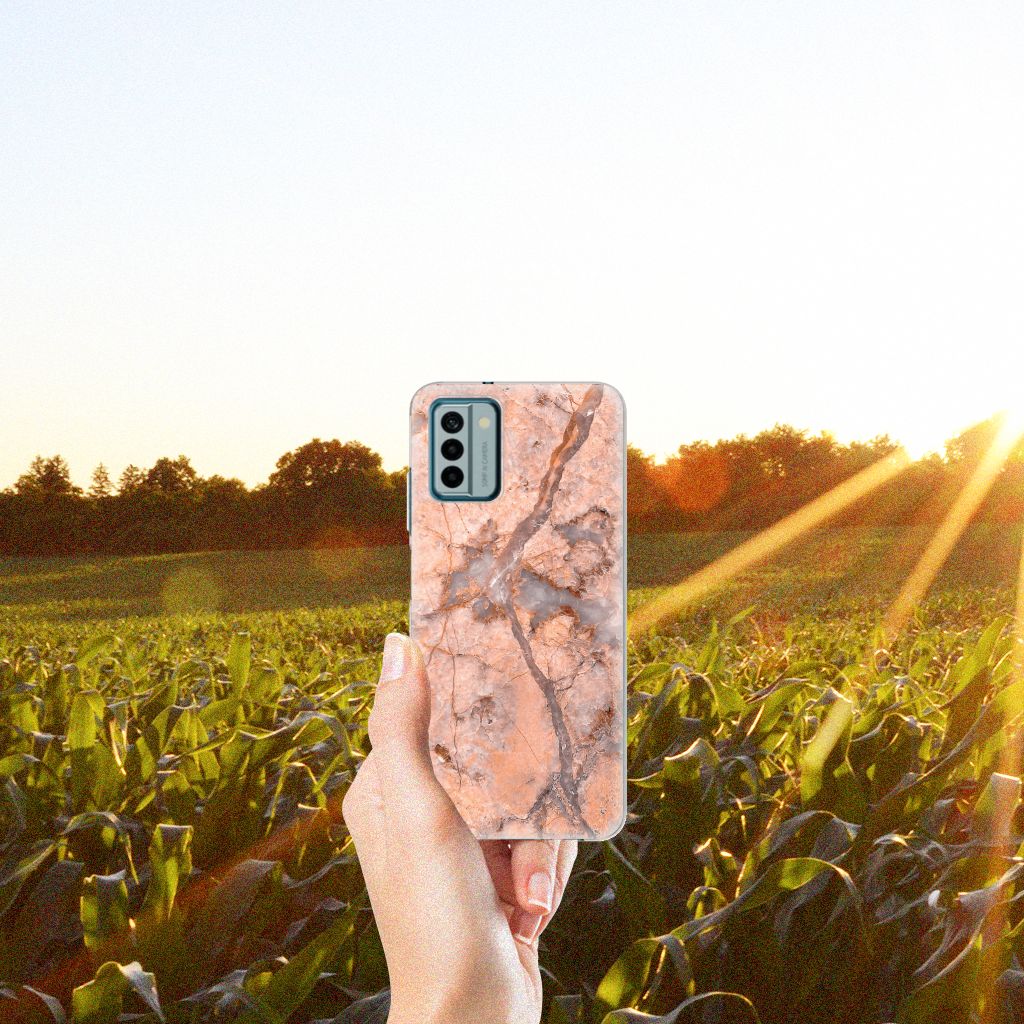 Dit design hoesje met Marmer Oranje is zeer geschikt voor jouw kostbare telefoon. Vanwege zijn prachtige lichtval en vastheid is marmer een zeer gewild bouwmateriaal. Wij kunnen inmiddels concluderen dat dit hoesje met oranje marmer ook zeer gewild is. Beloon jezelf en je telefoon met dit hele mooie Nokia G22 TPU Siliconen Hoesje. Naast het oranje marmer zijn er de diverse marmersoorten in een ruim kleurenpallet te krijgen. Deze tpu case met marmer in oranje wordt aan de achterzijde bedrukt. De case beschikt over opstaande randen en is gemaakt van onbreekbaar materiaal. De randen van de case in oranje marmer blijven transparant. Wij hebben onze designer veel vrijheid gegeven met het ontwerpen dit mooie hoesje. Het resultaat zie je terug in deze tpu case met oranje marmer, dat een hele goede bescherming is voor jouw smartphone. Des te mooi dat wij voor variatie hebben gekozen door een hoesje met oranje marmer aan de bieden.