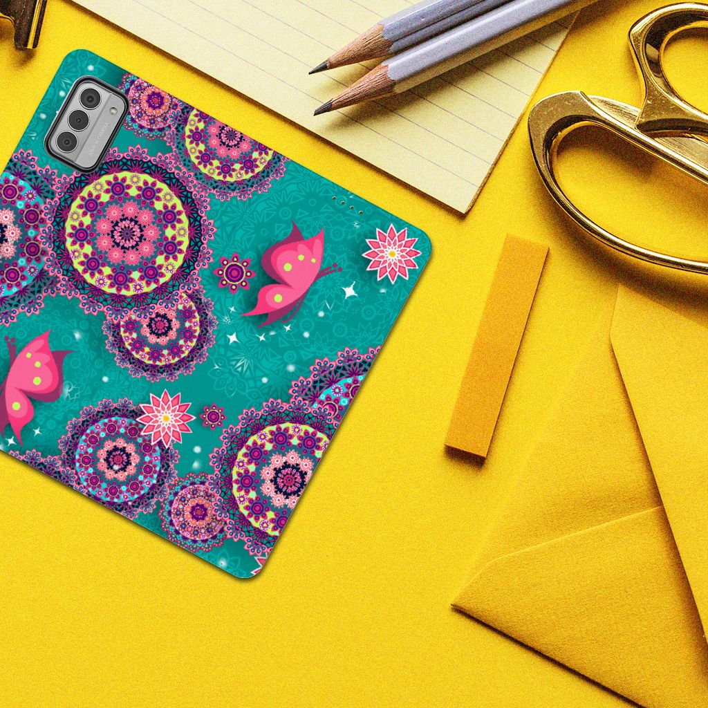 Deze opvallende Nokia G42 Bookcase met Cirkels en Vlinders is een ware eyecatcher. De meeste vlinders hebben een onopvallende vleugelkleur en dat kun je van de soort op dit hoesje ook zeker wel zeggen. Wij kunnen deze opvallende vlinders en cirkels op een zeer handige stand case zetten. Deze hoesjes zijn zeer gewild. Met onze geavanceerde printer zetten we de print van opvallende vlinders en cirkels op alle zijden van het hoesje. De case met vlinders heeft aan de binnenkant een houder waarin je jouw creditcard of ander pasje kwijt kunt. De case heeft bovendien een handige standaard. Verder is je telefoon natuurlijk maximaal beschermd met deze stand case met print van opvallende en kleurrijke vlinders. De houder aan de binnenzijde van het design hoesje met opvallende vlinder print is van TPU.