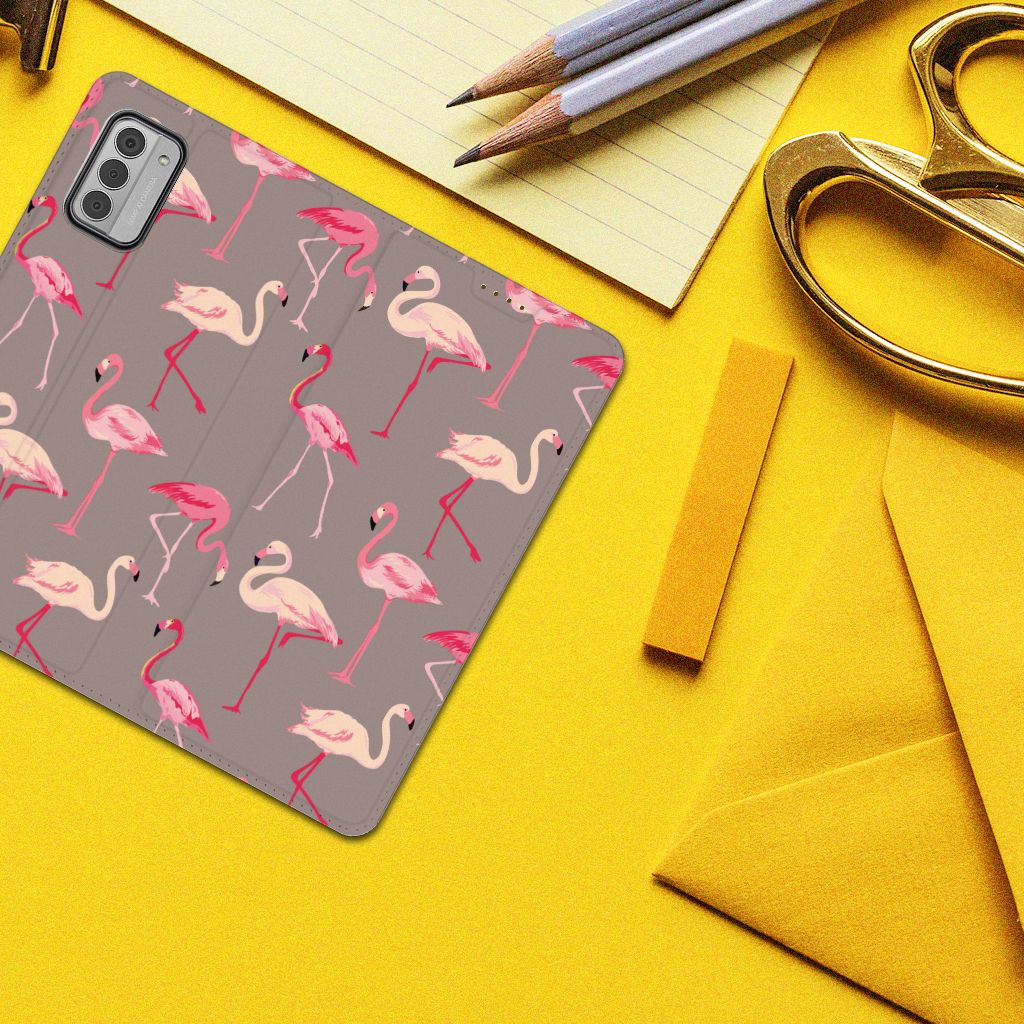 Een Nokia G42 Hoesje maken met rode flamingo’s is in vele opzichten bijzonder. De rode flamingo op het hoesje komt oorspronkelijk uit het Caraïbische gebied. Stel dat je in deze regio vakantie viert, dan val je zonder meer op met dit hoesje met flamingo’s. Deze stand case biedt bescherming voor alle zijden van je telefoon. Jouw smartphone ligt goed opgeborgen in de TPU houder aan de binnenzijde en in dit gedeelte van het hoesje met flamingo’s zit de magnetische sluiting. De lichtroze flamingo, ook present op deze case, wordt tegenwoordig als aparte soort gezien naast de rode flamingo. De stand case met flamingo’s heeft vakjes voor pasjes en is op maat gemaakt.