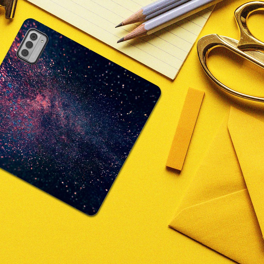 Je waant je in de zevende hemel met dit kunstzinnige, glitterachtige design hoesje met paarse en blauwe kleuren tegen een inktzwarte achtergrond. Het smartphone hoesje heeft ook een wat science fiction achtige allure. Met deze design Stars case zul je zeker opvallen. Als dit je bedoeling is, bestel dat snel dit waanzinnig mooie product voor je Nokia G42. Het telefoonhoesje is van alle gemakken voorzien en combineert een hele fraaie uitstraling met maximaal comfort. Bovendien is het gemaakt van zeer stevig en flexibel materiaal. Het unieke design, door B2C Telecom ontworpen, staat op een Stand Case. Deze case beschermt jouw telefoon aan alle kanten en beschikt over een 1 opbergvakje en een speciale standaard. Het hoesje wordt afgesloten met een magneet aan de binnenzijde. De houder aan de binnenzijde is van TPU.