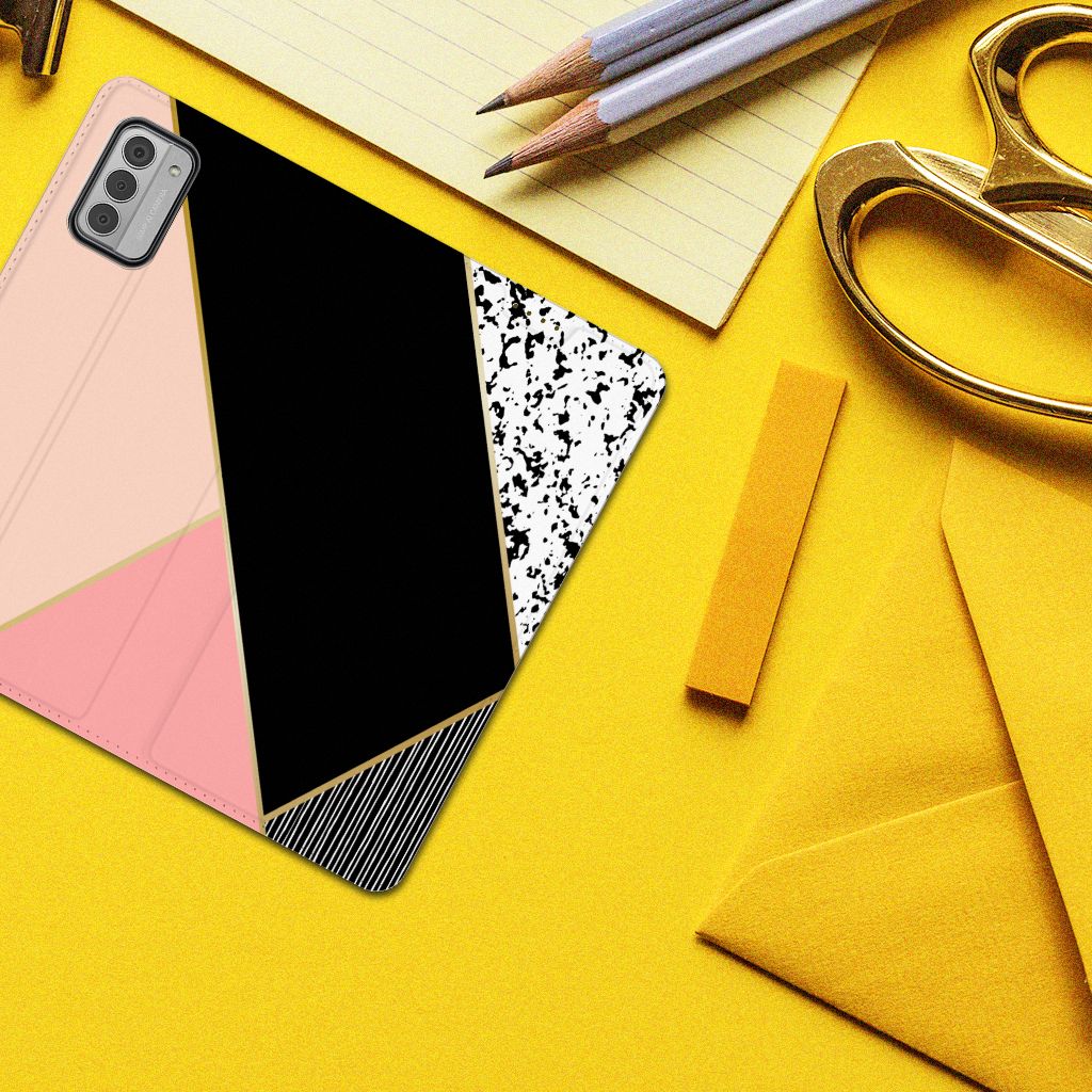 Nokia G42 Print Stand Case Zwart Roze Vormen