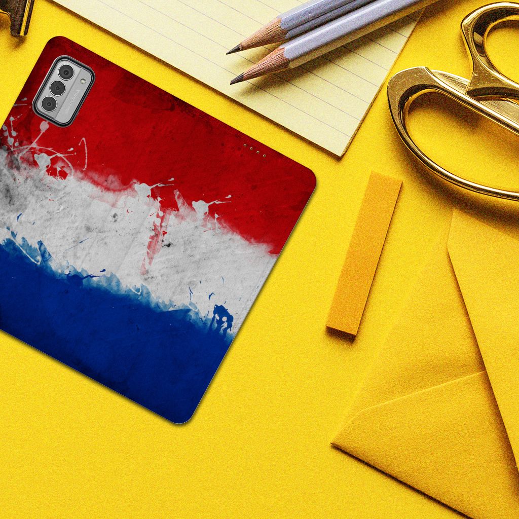 Wil jij de Nederlandse vlag altijd en overal met je meedragen? Dat doe je door dit design hoesje met Nederlandse vlag te kopen. Er zijn diverse dagen waarbij je de vlag uithangt zoals: Koningsdag, Bevrijdingsdag, Dodenherdenking (halfstok) en bij verjaardagen van leden van het Koninklijke huis. Daarnaast natuurlijk ook bij de feestelijkheden voor mensen die slagen voor hun opleiding. Maar als je een Nokia G42 Standcase koopt met Nederlandse vlag, heb je het rood, wit en blauw altijd bij de hand. Dat is ook verstandig, want met een stand case met vlag is jouw smartphone altijd goed beschermd. Stel nou dat jouw telefoon op de grond valt, dan komt dit hoesje met opbergvakje en magneet aan de binnenkant zeer goed van pas. De houder van TPU aan de binnenzijde is precies op maat gemaakt en de case heeft een standaard.