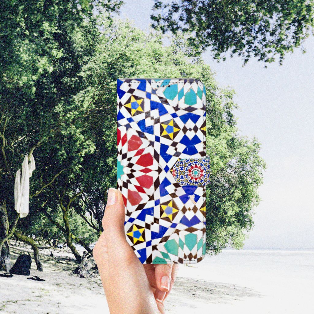 Aan design hoesjes met kunstvormen geen gebrek in onze uitgebreide collectie. Wat dacht je van dit design hoesje met Mozaïek . Dit is een kunstvorm waarbij een grote afbeelding wordt gemaakt uit een groot aantal kleine gekleurde steentjes (tesserae), die in een vloer of wand worden gemetseld. Deze gekleurde steentjes zie je terug op dit boekhoesje met design van mozaïek. Een boekhoesje is zo’n beetje de veiligste case die er bestaat. Een Nokia G50 Bookcase met print zorgt voor een volledige bescherming van je smartphone en wordt aan alle zijden bedrukt met mozaïek. Een deel van de foto’s staat ook op het lipje aan de buitenzijde. Verder is de houder aan de binnenzijde van TPU. De Grieken en Romeinen beheersten de kunst al. Op diverse plaatsen in Europa zijn mozaïeken teruggevonden die tot op de dag van vandaag goed bewaard zijn gebleven. Met een hoesje met mozaïek blijft jouw telefoon in tact. Je pasjes en briefgeld kun je in de vakjes aan de binnenzijde stoppen