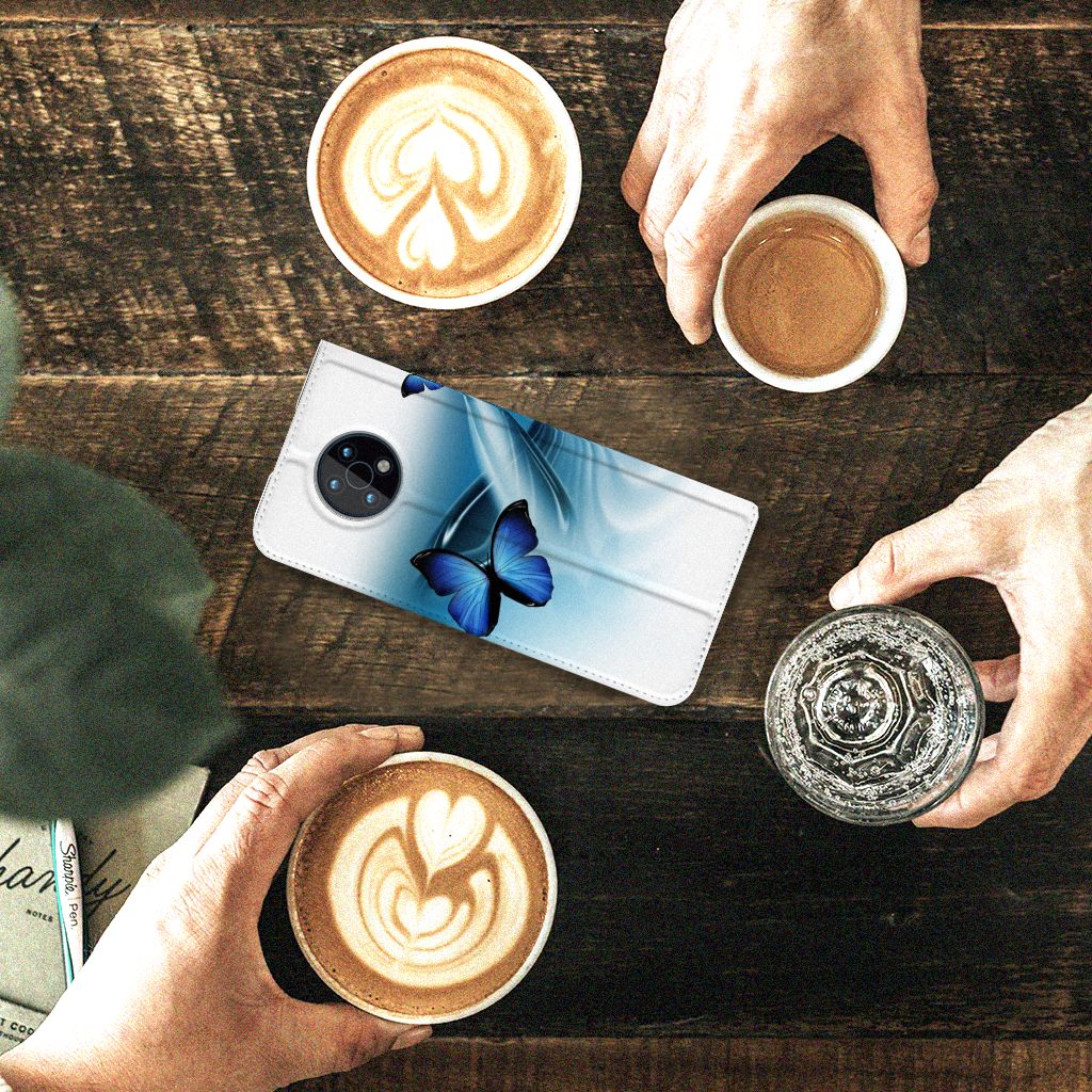 Deze vrolijke Nokia G50 Hoesje maken met blauwe vlinders is een ware eyecatcher. De meeste vlinders hebben een onopvallende vleugelkleur, andere soorten hebben juist heldere en felle kleuren. Wij kunnen deze blauwe vlinders op een zeer handige stand case zetten. Deze hoesjes zijn het meest gewild. Met onze geavanceerde printer zetten we de afbeelding van vlinders op alle zijden van het hoesje. De case met vlinders heeft aan de binnenkant een houder waarin je jouw creditcard of ander pasje kwijt kunt. De case heeft bovendien een handige standaard. Verder is je telefoon natuurlijk maximaal beschermd met deze stand case met print van blauwe vlinders. De houder aan de binnenzijde van het design hoesje met vlinder print is van TPU.