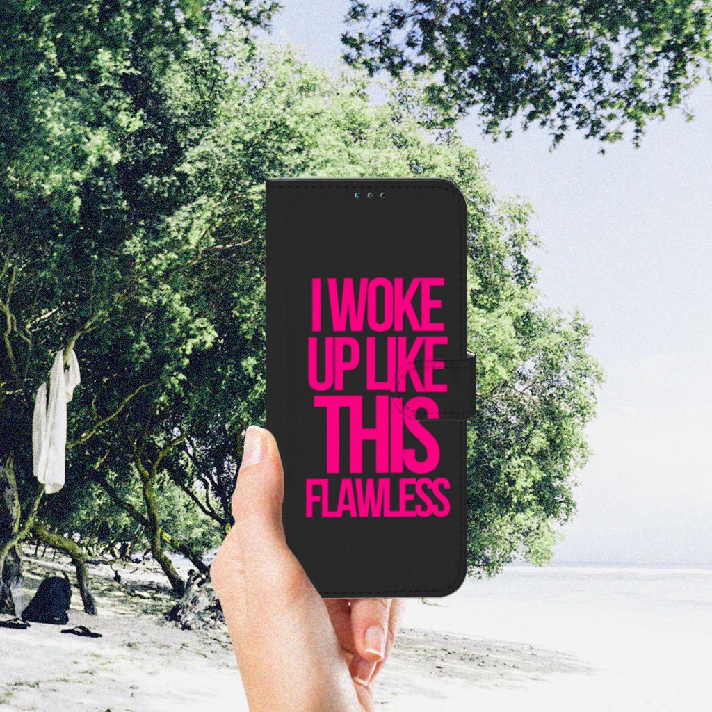 Met dit zwarte Nokia G50 Hoesje met naam met paarse tekst heb je een geweldige bescherming van je smartphone in handen. Dit zwarte hoesje met Woke Up tekst is een must voor jouw smartphone. Met dit design hoesje tekst val je ook zeker op. Je weet ook zeker dat het hoesje exclusief is. Het design is gemaakt door B2C Telecom. Het hoesje heeft verschillende vakjes en is aan alle zijden bedrukt. Ook het lipje aan de buitenkant kan worden bedrukt. De houder is van TPU, de buitenzijde van PU-leer. We willen je er ook op wijzen dat je zelf een hoesje kunt ontwerpen, met eigen beelden en teksten. Met onze Phone Case Designer kun je zelfs opvallende effecten, patronen en clip arts aan het ontwerp toevoegen.