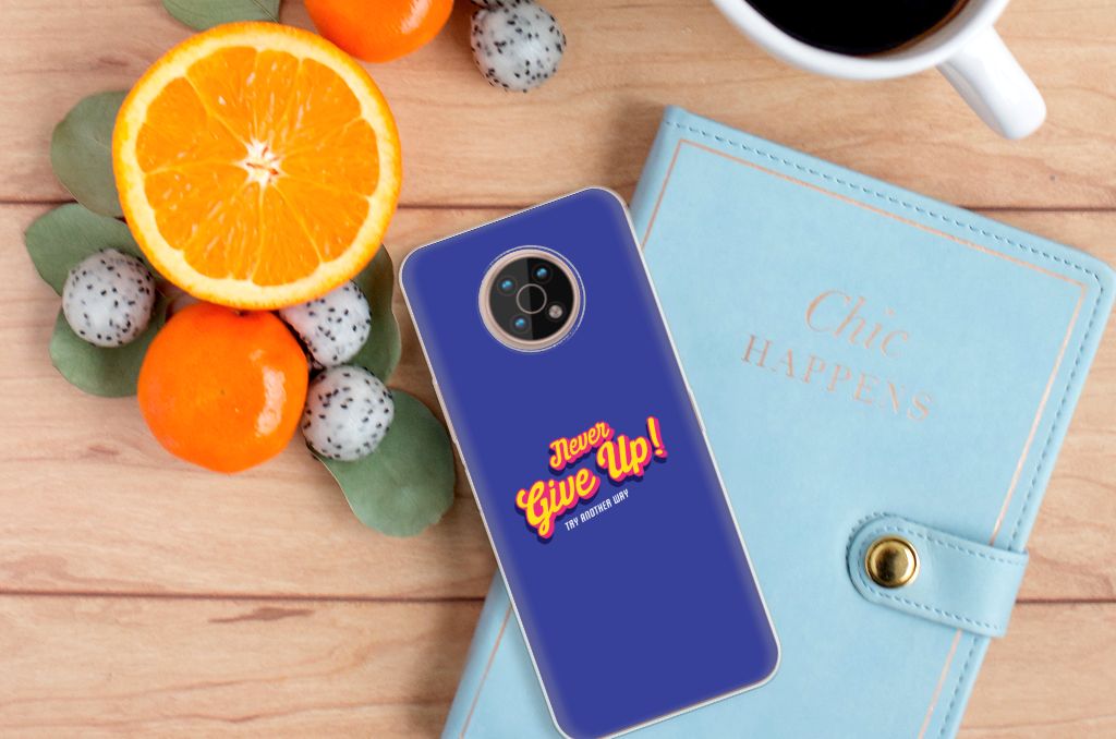 Ben je op zoek naar een uniek telefoonhoesje voor je Nokia G50? Dan ben je bij B2C Telecom aan het juiste adres! Speciaal voor jou hebben we dit prachtige Never Give Up design in onze collectie hoesjes opgenomen. Het design wordt bedrukt op een Siliconen hoesje met naam en is gemaakt van flexibel rubber. Het design wordt alleen aan de bovenkant van het hoesje bedrukt en de randen blijven transparant. Aan de zijkanten zijn uitsparingen gemaakt waardoor je met gemak alle knoppen en poorten kunt bedienen. Wij adviseren om dit hoesje in combinatie met een screenprotector te gebruiken voor een langere levensduur van je telefoon. Wil je dit design hoesje nog iets extra's geven? Voeg dan gratis je naam of een quote toe! Is dit design hoesje toch niet helemaal wat je zocht? Ontwerp dan zelf een hoesje in ons ontwerpprogramma.