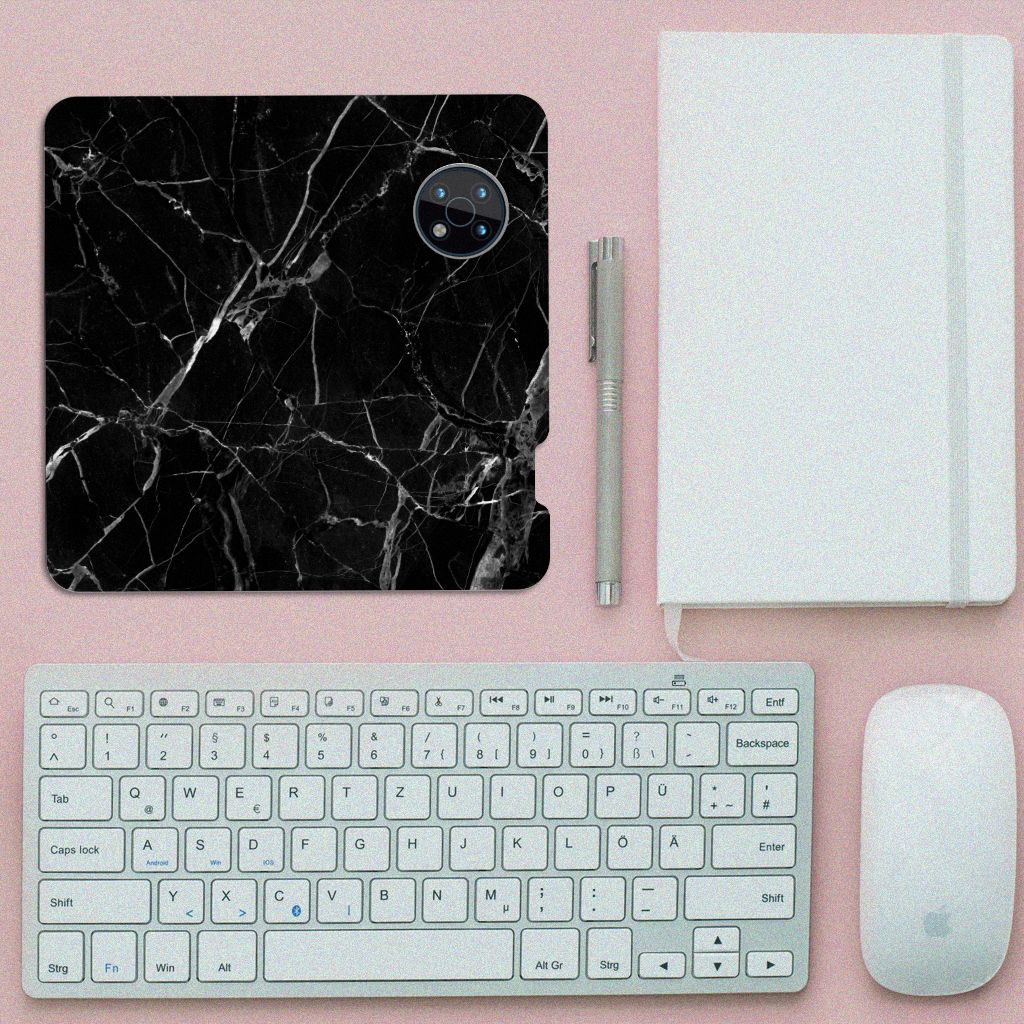 Dit design hoesje met Marmer Zwart is voor de artistieke personen onder ons. De Grieken en Romeinen wisten het materiaal al te waarderen door het in de bouw toe te passen. Naast het witte marmer met haar zacht grijze geaderde belijning zijn de diverse soorten in een gevarieerd kleurenpallet te krijgen. We hebben mooie kleuren op design hoesjes gezet, zoals in dit geval zwart marmer. Dit is een Nokia G50 Standcase met marmer in zwarte kleur. Het marmer wordt bedrukt op alle zijden van een stand case, die beschikt over 1 vakje voor een pasje en een magnetische sluiting aan de binnenzijde. Verder heeft de hoes een houder van TPU. De rijkdom aan kleuren en varianties in afwerking geeft ontwerpers de vrijheid om met marmer hele mooie architectonische projecten te realiseren. Wij hebben onze ontwerper tevens veel vrijheid gegeven. Het resultaat zie je terug in deze stand case met zwart marmer, dat de ideale bescherming voor jouw smartphone biedt.