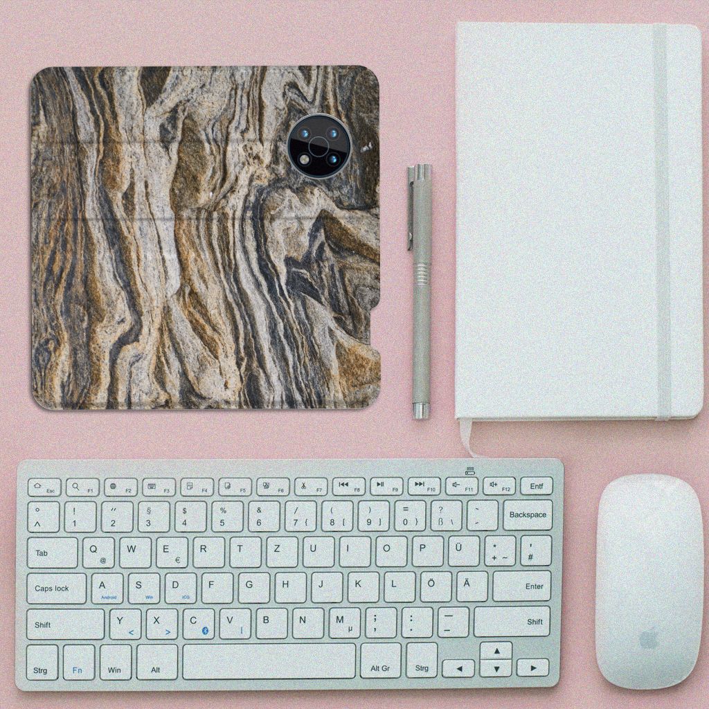 Deze Nokia G50 Standcase is jouw rots in de branding. Het bruine rotsachtige steen maakt van jouw stand hoesje een echte eyecatcher. Een stand case is van zichzelf al zeer fraai om dit zien, maar met dit design wordt de smartphone pas echt een begerenswaardig apparaat. Het bruine rotsachtige steen wordt bedrukt op alle zijden van de stand case, die beschikt over een vakjes voor pasjes en toebehoren en een magnetische sluiting aan de binnenkant. Verder heeft de case een houder van TPU. Met steen kun je alle kanten op, dat bewijzen we met deze collectie design hoesjes. Onze designer heeft zich overtroffen met dit boekhoesje met structuur van steen.