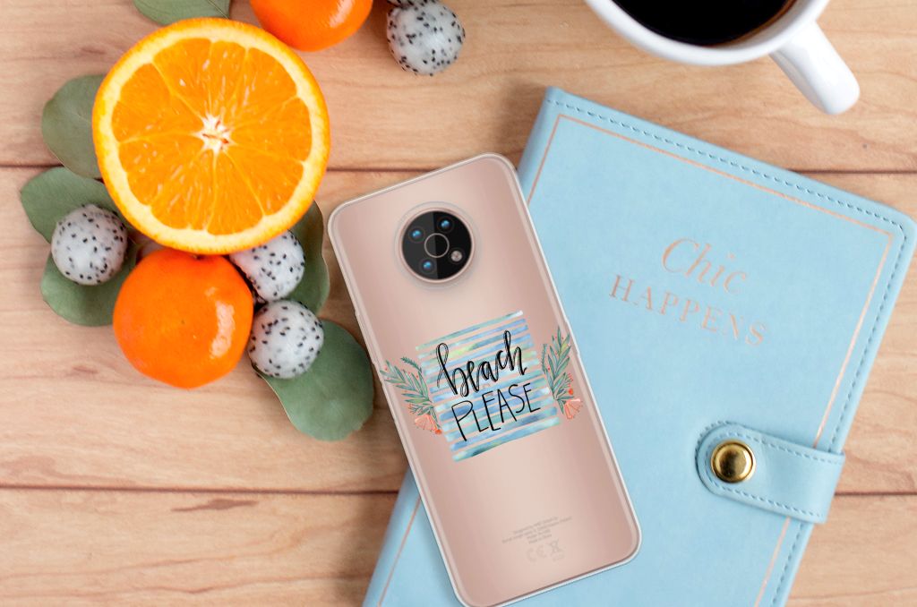 Dit design is perfect voor iedereen die geen genoeg kan krijgen van zon, zee en strand. Met dit Telefoonhoesje met Naam voor de Nokia G50 draag je de zomer altijd een beetje bij je. Dankzij de tekst ‘Beach Please’ ziet iedereen dat je een echte zonaanbidder bent. Het boho beach-ontwerp is vrolijk dankzij de subtiele bloemen en de leuke kleurtjes. TPU is flexibel en heel erg sterk. Zo is je telefoon aan de achterkant en de randen heel goed beschermd. De case is aan de bovenkant bedrukt, de randen blijven transparant. Het TPU-hoesje is perfect te combineren met een screenprotector, zo zijn je telefoon en je beeldscherm altijd goed beschermd.