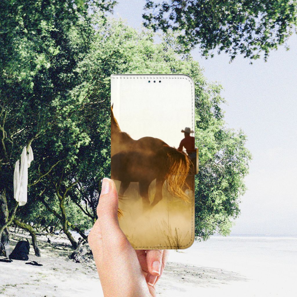 Voor de paardenliefhebbers onder ons hebben we onze collectie uitgebreid met dit design hoesje met print van een cowboy met paarden. Vroeger hield de mens vooral werkpaarden, inmiddels hebben we vriendschap gesloten met het paard. Vandaar dat het ook een favoriet dier is op onze smartphonehoesjes, zoals deze boekhoesjes. Dit Telefoonhoesje met Pasjes met paarden is niet alleen super mooi en chique, het sluit ook nog perfect dankzij het lipje aan de buitenzijde. Verder heeft de case een TPU houder aan de binnenzijde en houders voor pasjes en briefgeld. Zie je liever je eigen paard terug op een hoesje voor jouw Nokia G50? Dat kan! Door zelf een uniek hoesje te ontwerpen, met eigen foto’s en teksten. Het boekhoesje met paarden wordt aan alle zijden bedrukt.