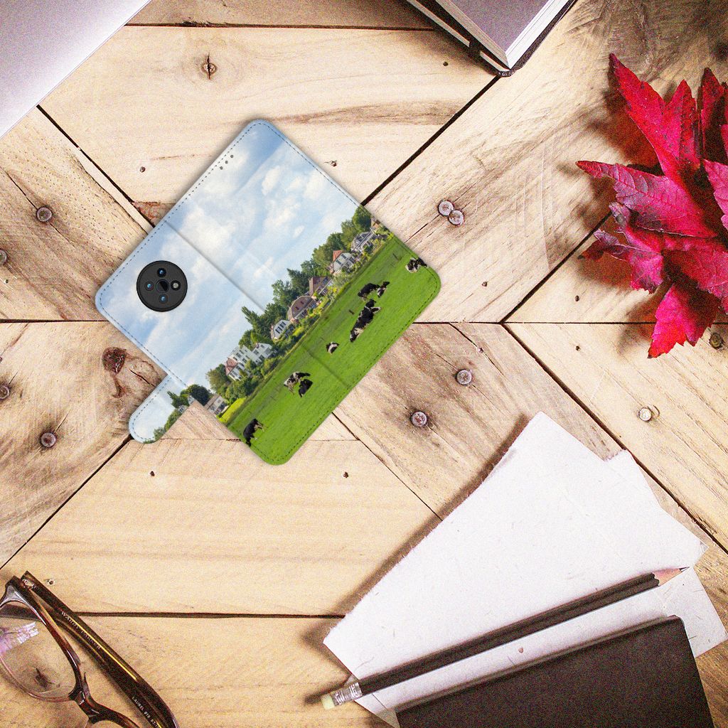De koe is een kuddedier en graast het liefst met soortgenoten. Dit levert ook mooie plaatjes op, zoals je kunt zien op dit boekhoesje met Koeien. Dit smartphone hoesje met koeien ziet er super strak uit en is voorzien van verschillende opbergvakjes. Een Nokia G50 Telefoonhoesje met Pasjes met grazende koeien beschermt jouw smartphone perfect. Alle zijden worden bedrukt met de koeienprint, net als het afsluitlipje aan de buitenkant. Koeien hebben graasperioden van ongeveer een uur. Ze herkauwen het liefst liggend, zoals op het hoesje. Zo goed als grazen voelt voor koeien, zo duurzaam zal jouw smartphone worden met dit boekhoesje met koeien. De binnenkant van het boekhoesje met koeien is van TPU, de buitenzijde van leer.