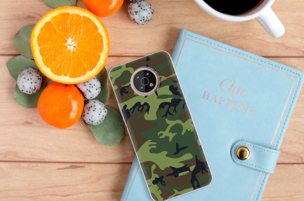 Voel je jezelf verbonden met het leger, dan zal deze Nokia G50 TPU bumper je zeker bevallen. Het tpu hoesje beschikt namelijk over donkere camouflage kleuren. Deze worden vaak gebruikt door mensen die zich graag willen mengen in hun omgeving. Dit Army Dark hoesje is er dus voornamelijk in kleuren die in de natuur voorkomen, zodat je één wordt met je achtergrond. Beschermt de krijgsmacht volk en vaderland, dit hoesje in donkere camouflage kleuren zal jouw telefoon onder alle omstandigheden schadevrij houden. Met een hoesje in dit soort kleuren zal je niet zo snel opvallen. Het design staat op een TPU case. Dit hoesje wordt alleen aan de bovenkant bedrukt met donkere camouflage kleuren en is zeer flexibel. De randen van het hoesje blijven transparant.