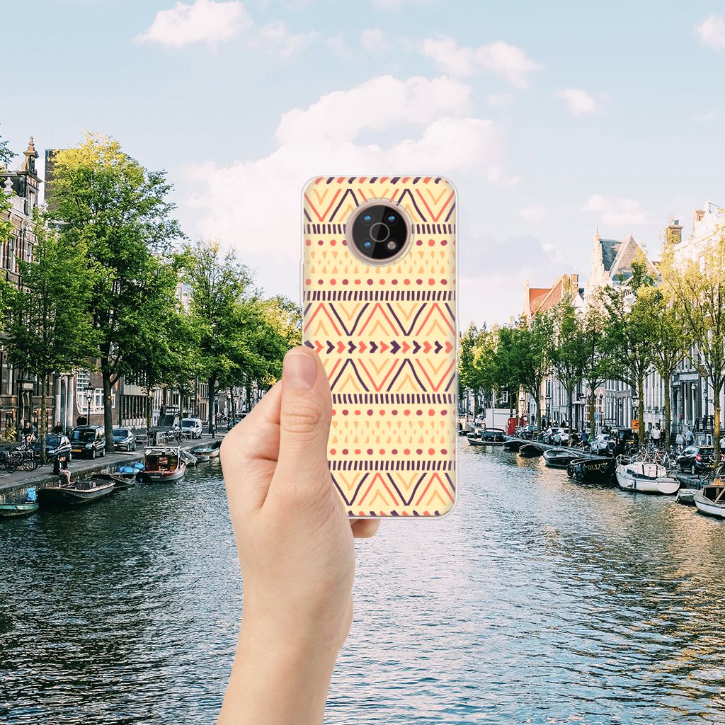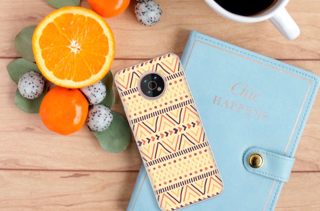 De Azteken leefden tussen 1200 en 1521 in het huidige Mexico. De mooie Aztec-patronen waar zij bekend om stonden, zien we nu nog op kleding, stoffen en tassen. Wie had toen kunnen bedenken dat we diezelfde prints honderden jaren later zelfs op een telefoonhoesje zouden vinden? Dit kleurrijke Aztec Yellow-hoesje is perfect voor iedereen die een stukje geschiedenis bij zich wil dragen maar ook gewoon een mooi patroon op zijn hoesje wil. Dit vrolijke, kleurrijke ontwerp staat op een TPU bumper voor de Nokia G50. TPU is flexibel en onbreekbaar. Zo is je telefoon aan de achterkant en de randen heel goed beschermd. De case is aan de bovenkant bedrukt, de randen blijven transparant.