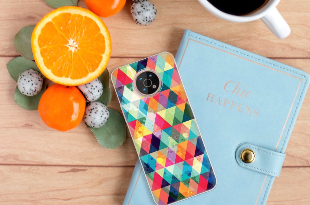 Van dit geruite design hoesje moet je een beetje houden. Maar als je het eenmaal in bezit hebt, ben je waarschijnlijk binnen no time verkocht. Het design heeft ruitjes in alle kleuren van de regenboog en door de grijze achtergrond kan het hoesje enigszins druk overkomen. Maar tegelijkertijd is dit de kracht van het hoesje. Met dit design hoesje Geruit zal je namelijk heel erg opvallen. Dit is voor veel vooral jonge smartphone gebruikers een belangrijk voordeel. Deze geruite print staat op een Nokia G50 TPU bumper. Dit zeer flexibele smartphone hoesje heeft alle nodige uitsparingen en past altijd in je broekzak. De case is aan de bovenkant bedrukt, de randen blijven transparant.
