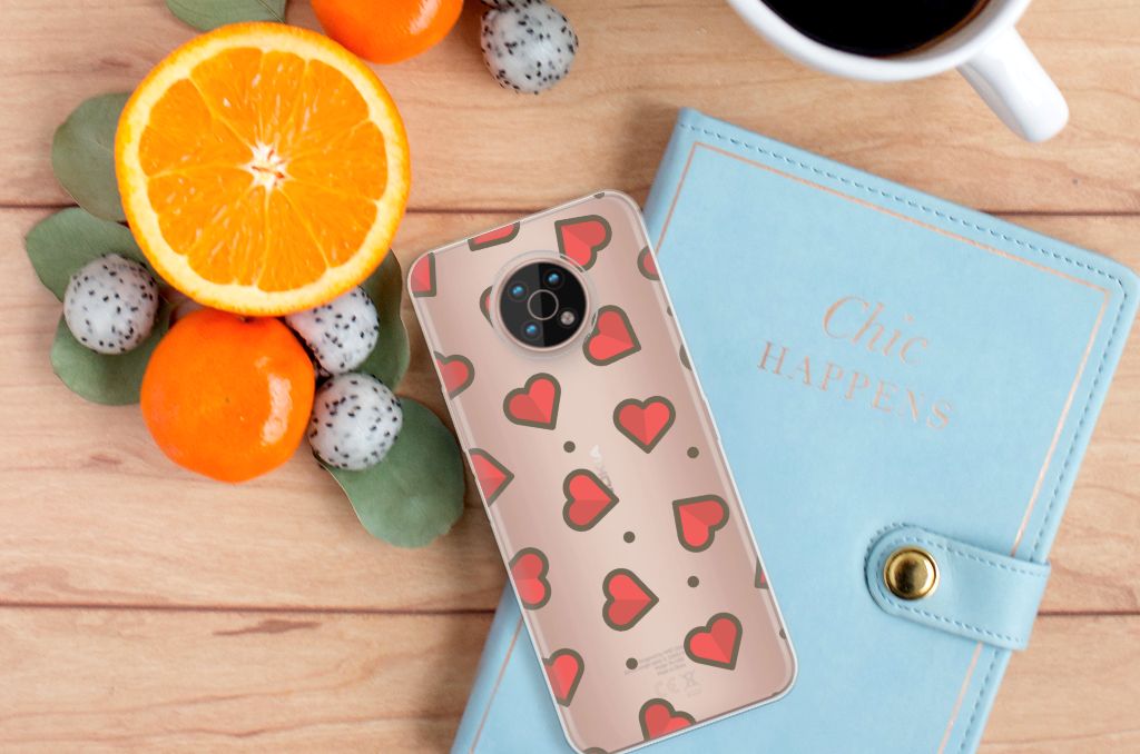 Met deze Nokia G50 TPU bumper met hartjes op een grijs met witte achtergrond maak jij een goede beurt als je dit cadeau geeft aan je vriend of vriendin. Bekroon je liefde voor elkaar met deze hele mooie tpu case, die jouw telefoon met name aan de achterkant en zijkanten goed beschermt. Dit is echt een prachtige manier om je telefoon te beschermen. Het tpu hoesje met design met Hearts is ook nog eens zeer praktisch, mede door het buigzame materiaal en de uitsparingen. Als je telefoon met het TPU hoesje uit je hand valt, stuitert het als het ware meteen weer terug in je hand en zal het scherm in tact blijven. De case heeft namelijk opstaande randen aan de voorkant. Alleen de bovenkant van de case wordt bedrukt met hartjes, de zijkanten zijn doorzichtig. Voor een habbekrats is dit hoesje met hartjes op een grijs met witte achtergrond te bestellen.