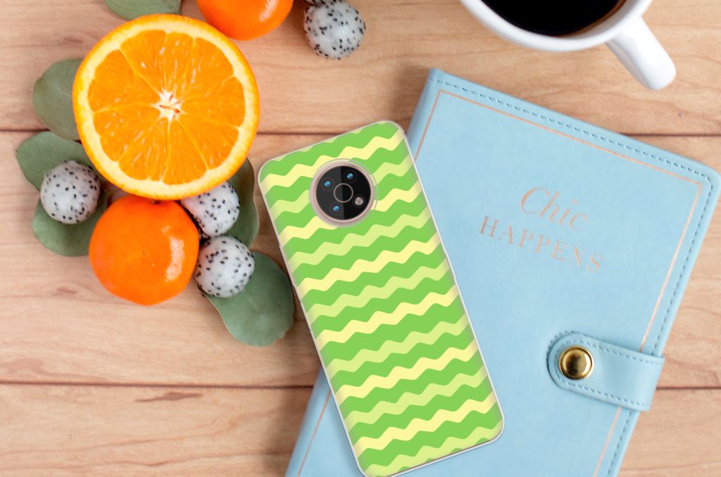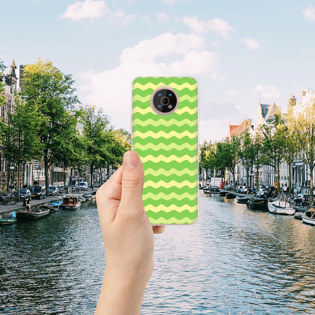 Dit groene design hoesje met groene golven is speciaal ontworpen voor jouw telefoon. We hebben een vleugje geel toegevoegd, zodat er sprake is van variatie. Dit Waves Green hoesje ziet er flitsend uit. Dat kan ook niet anders, als je weet dat we veel energie steken in het bedenken van originele designs. Een heel strak Nokia G50 TPU bumper, met zeer veel opties. Past dit groene design hoesje met golven goed bij jou? Bestel het dan vandaag nog, tegen zeer lage kosten. Het design staat op een TPU case. Dit hoesje wordt alleen aan de bovenkant bedrukt en is zeer flexibel. De randen van het hoesje met groene golven blijven transparant en worden niet bedrukt. Met dit hoesje past jouw telefoon altijd in je broekzak.